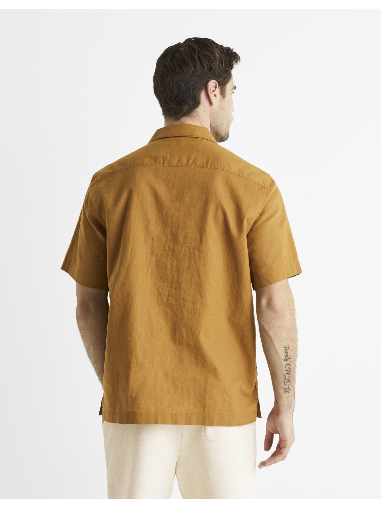 Světle hnědá pánská košile s krátkým rukávem Ombre Clothing