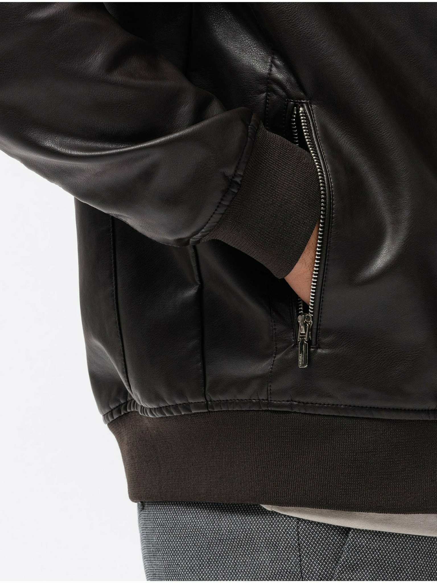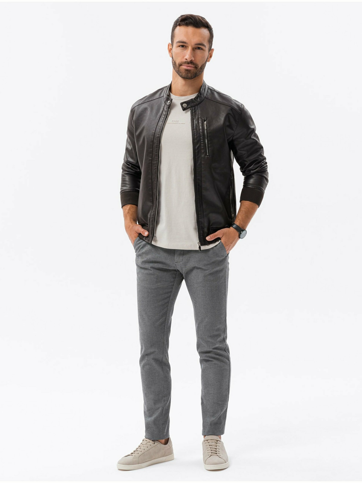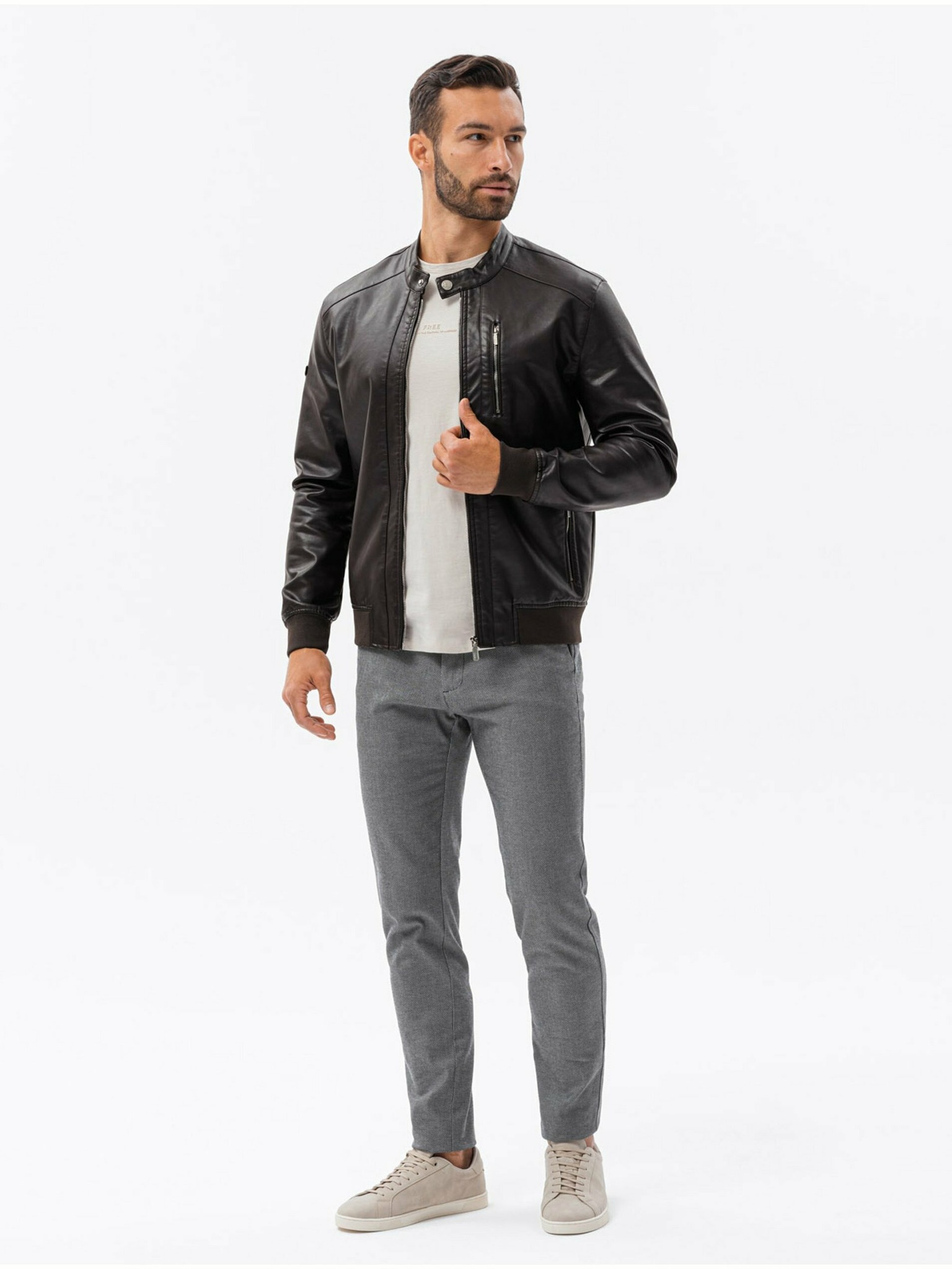 Tmavě hnědá pánská koženková bunda Ombre Clothing