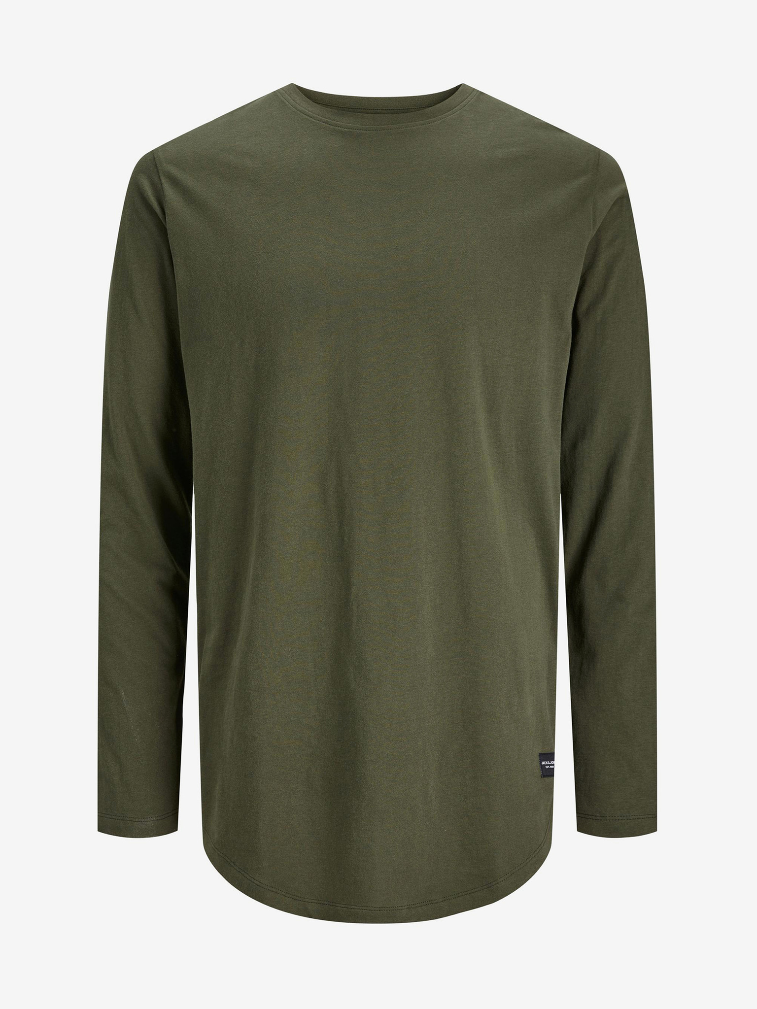 Pánské bavlněné tričko LOOSE FIT s dlouhým rukávem a kulatým výstřihem - khaki V4 OM-LSBC-0129 Ombre Clothing