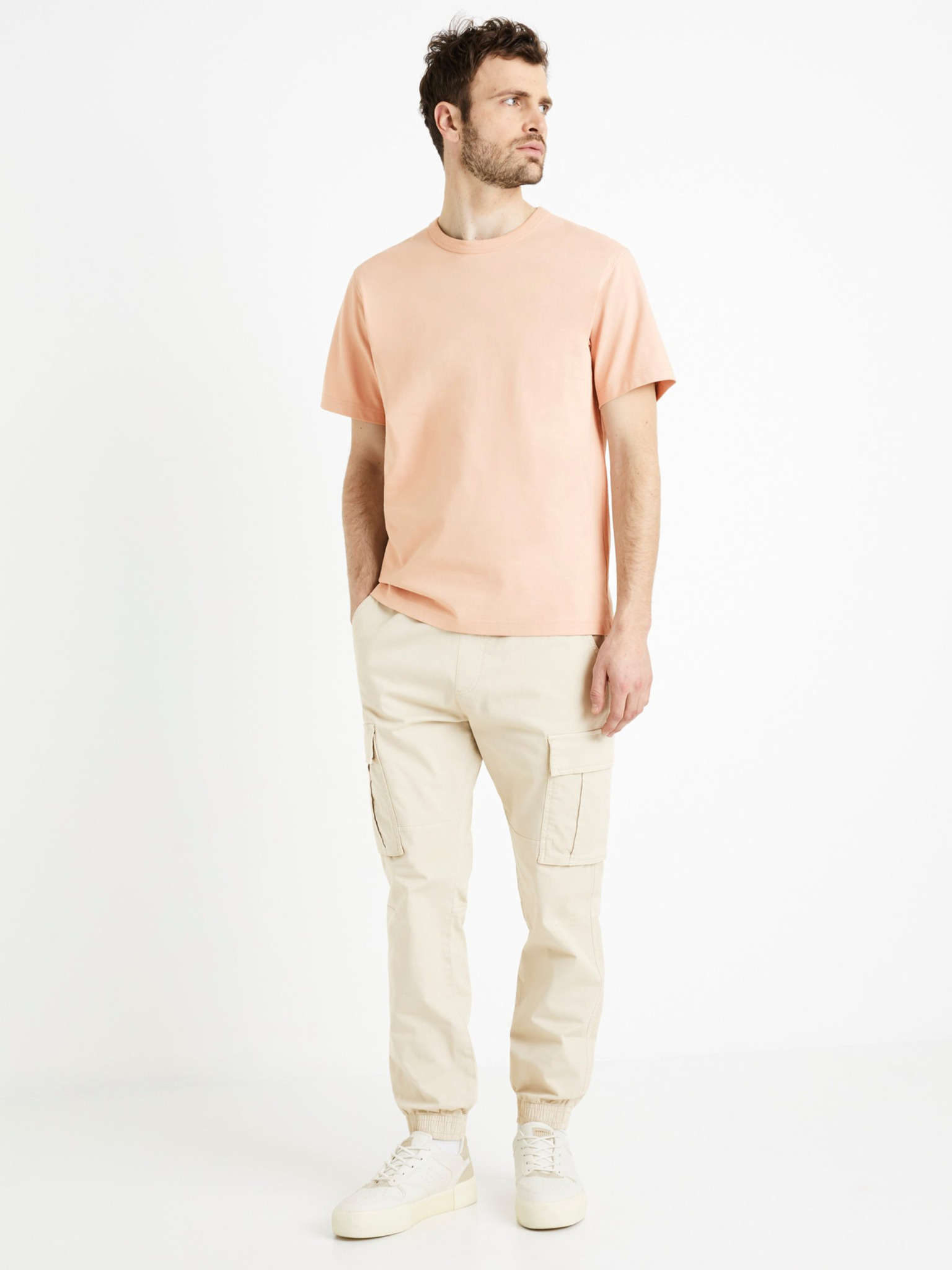 Krémové pánské cargo kalhoty Celio Cokit4