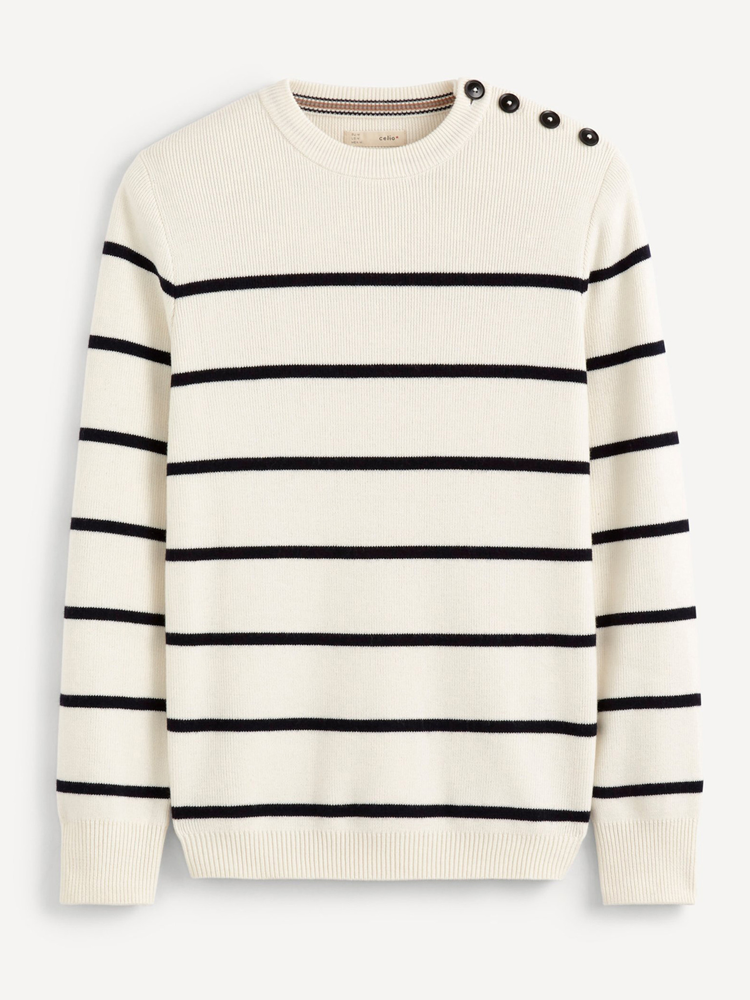Krémový pánský žebrovaný basic svetr Celio Dexter