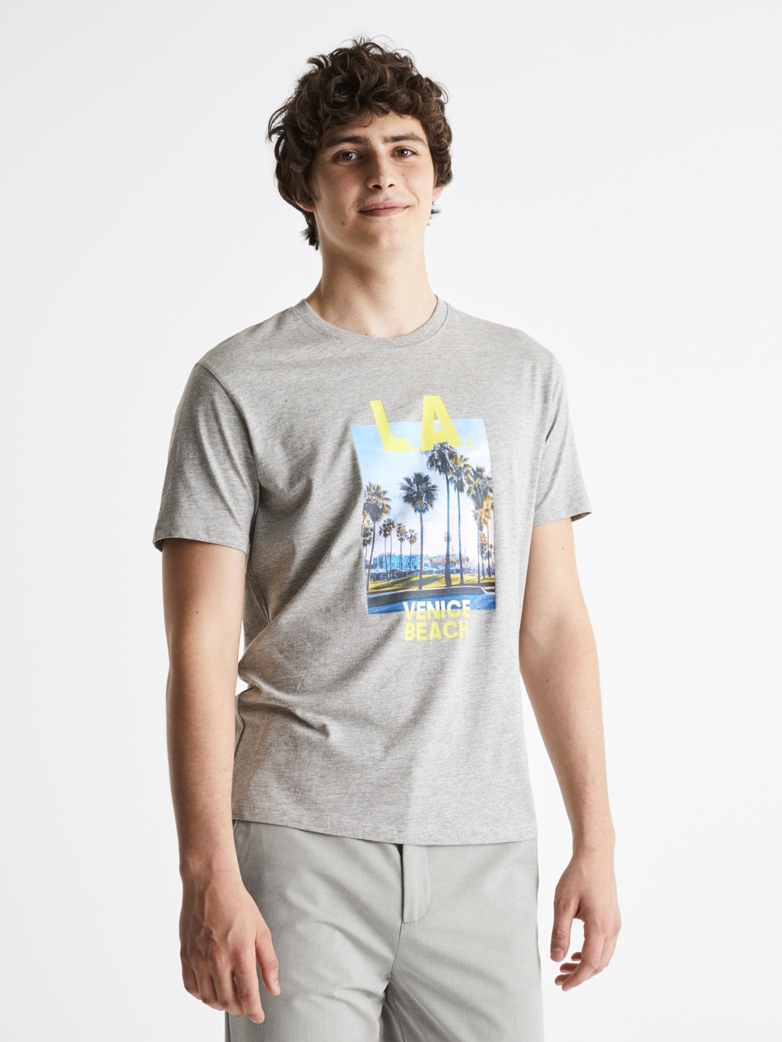 Světle šedé basic triko Celio Tebase