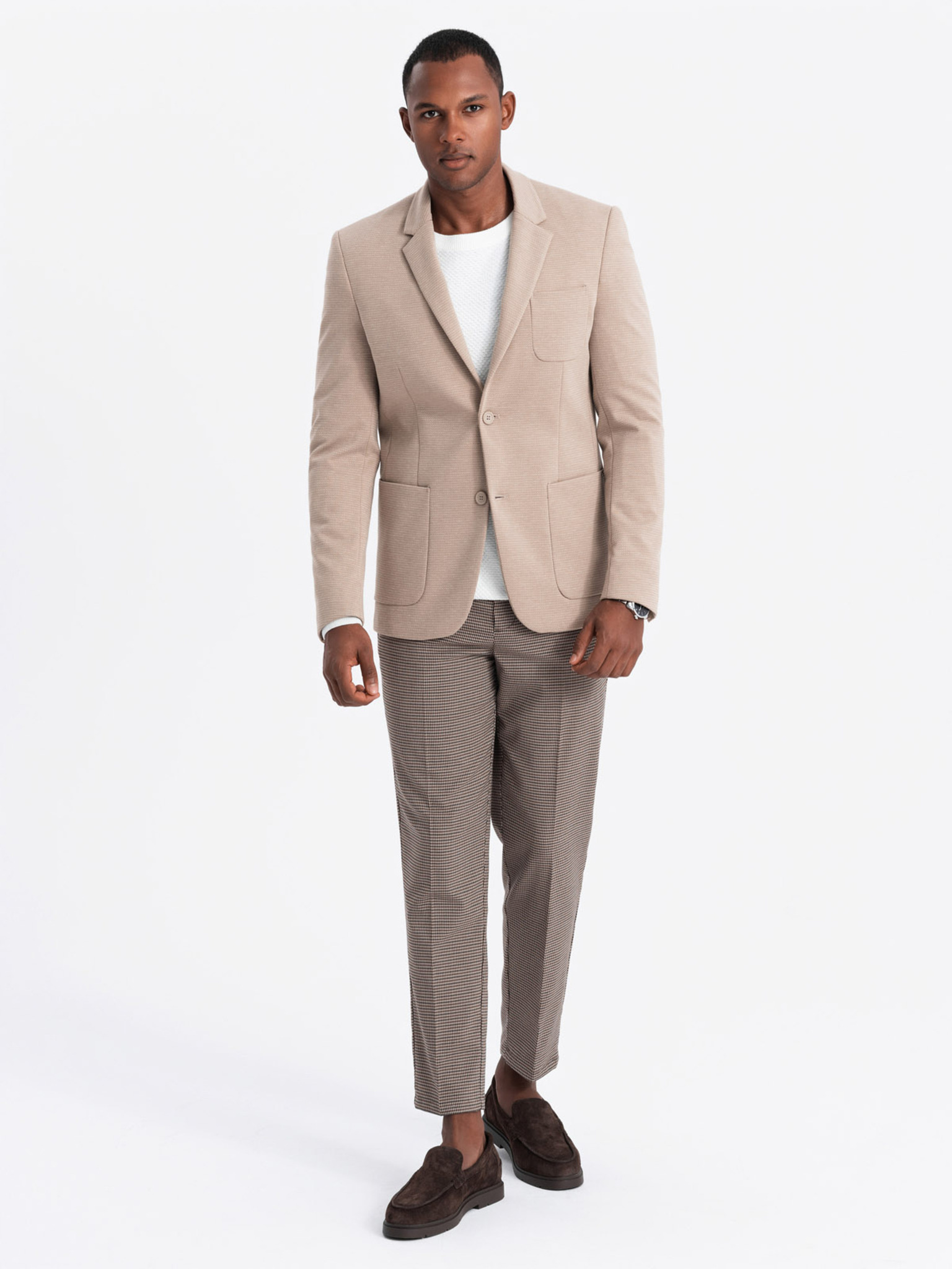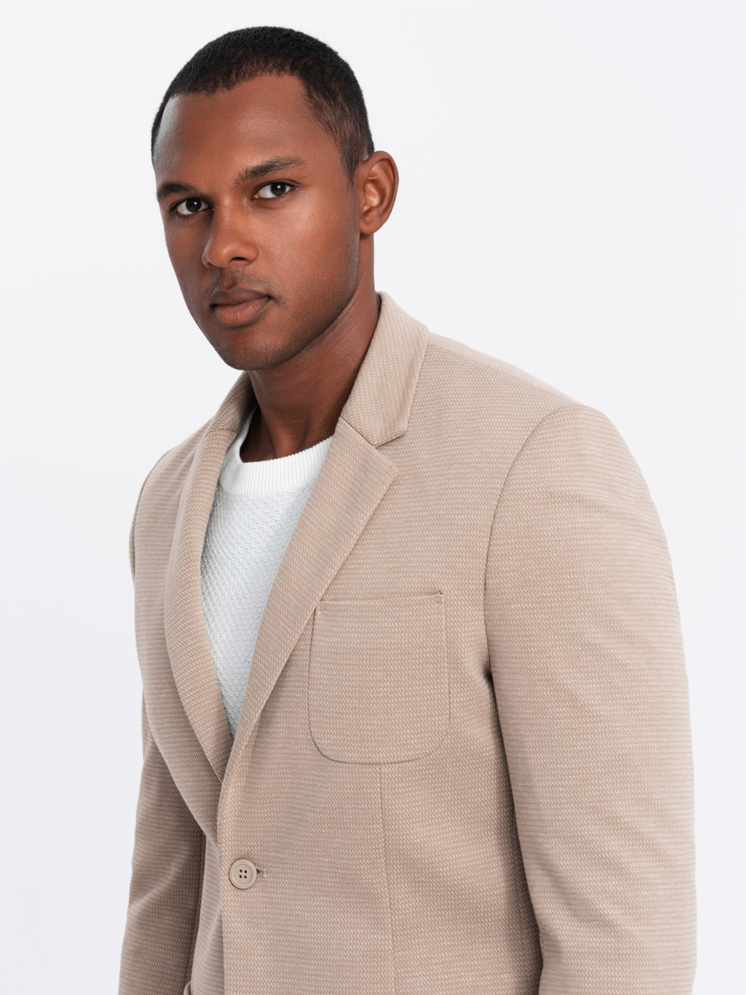 Pánské béžové sako SLIM z jemně strukturovaného úpletu