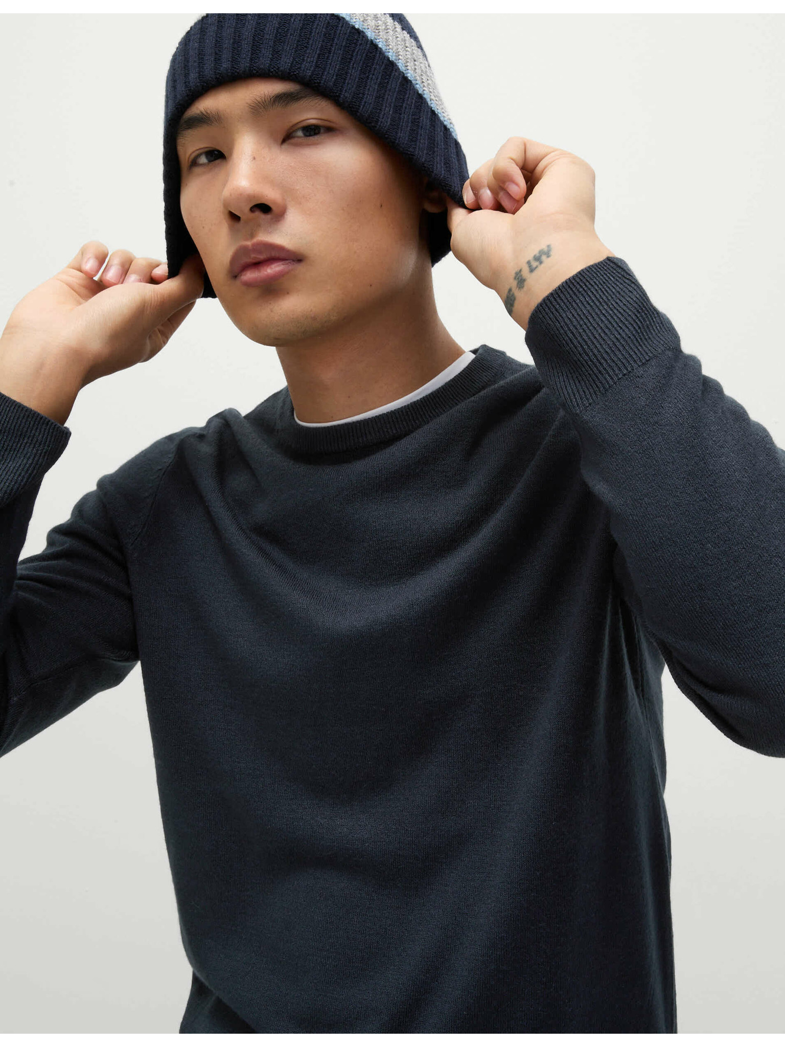 Žebrovaný svetr s výstřihem ke krku, z mimořádně měkké příze s příměsí vlny Marks & Spencer námořnická modrá