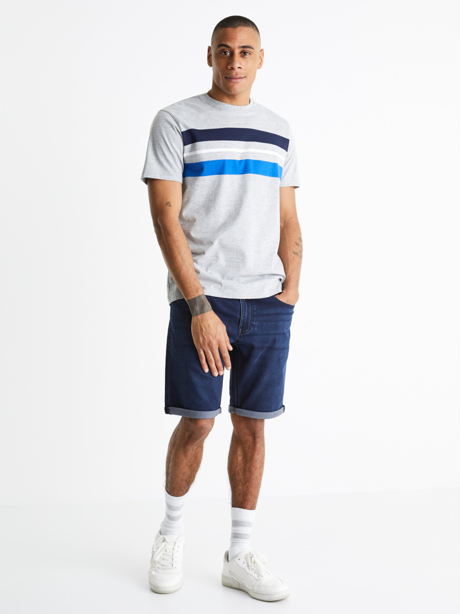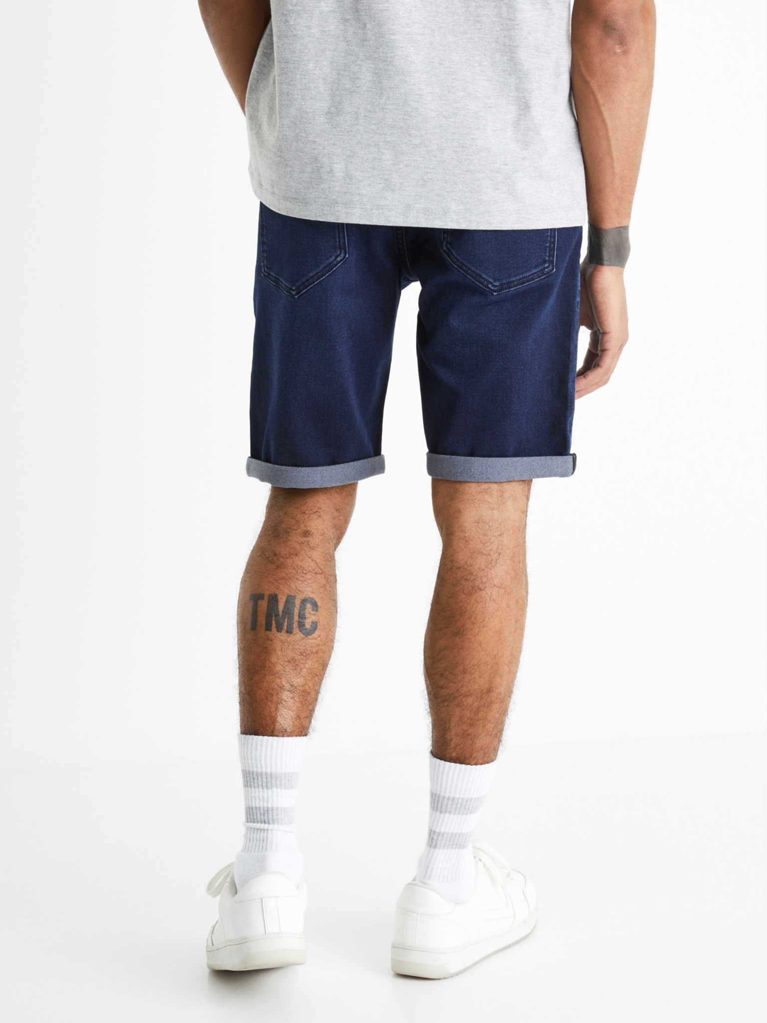 Pánské klasické chino šortky s ohrnutou nohavicí - tmavě modré