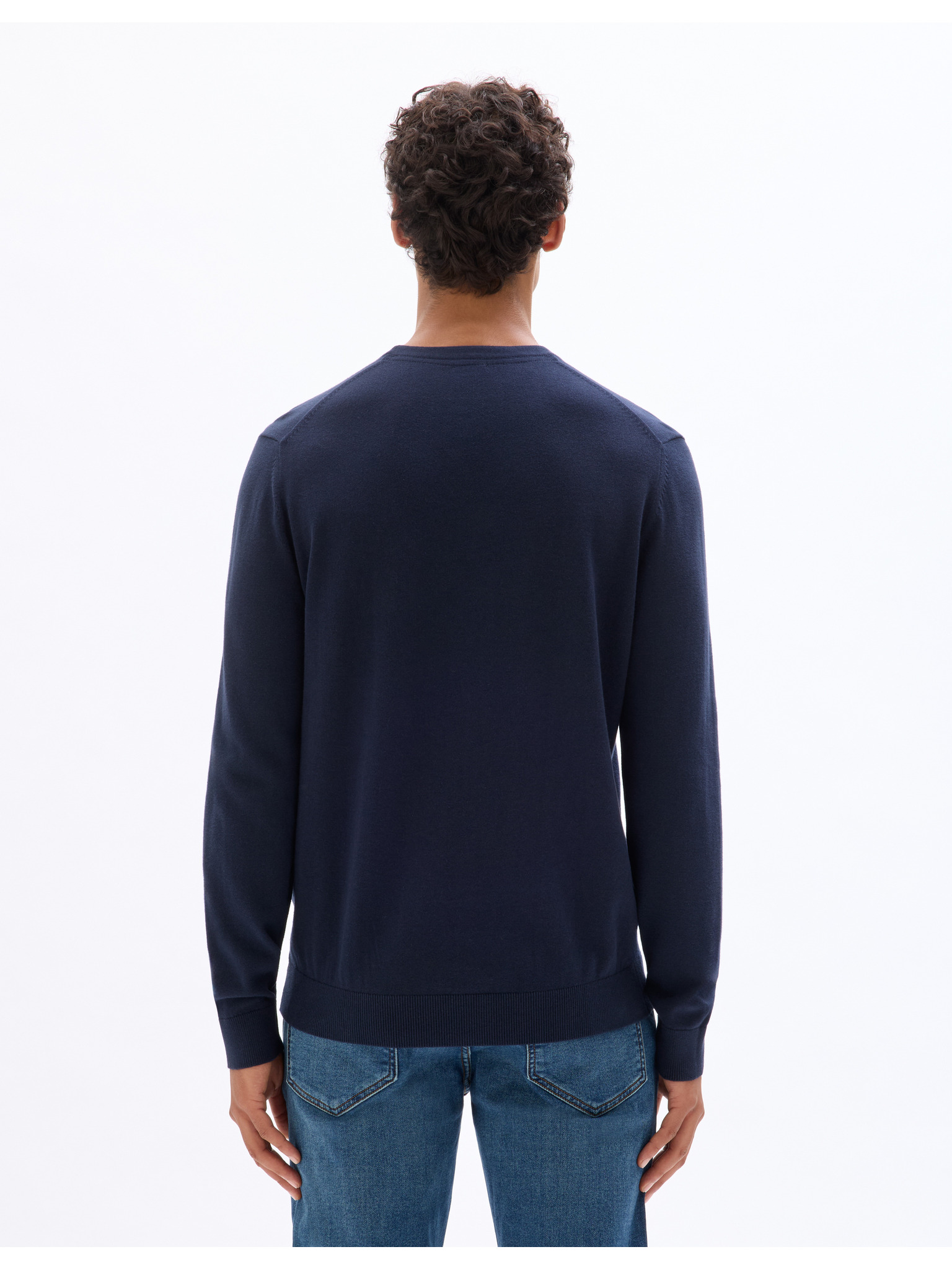 Tmavě modrý pánský basic svetr s véčkovým výstřihem Ombre Clothing