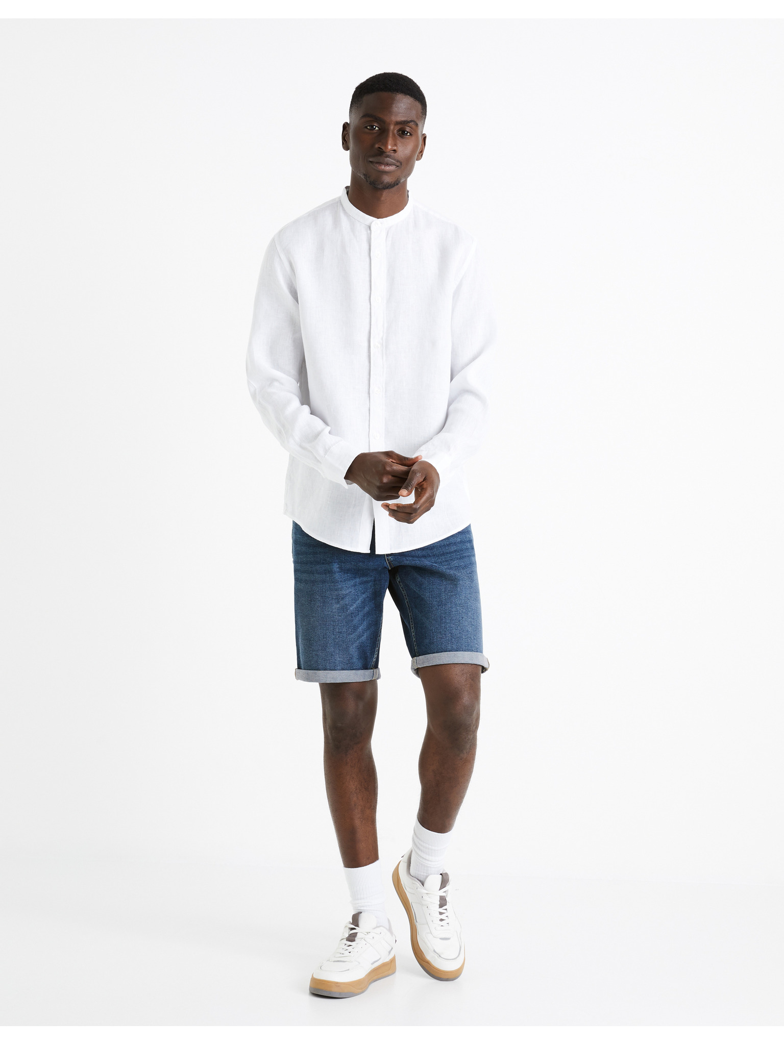 Bílá pánská lněná košile Celio Daflix