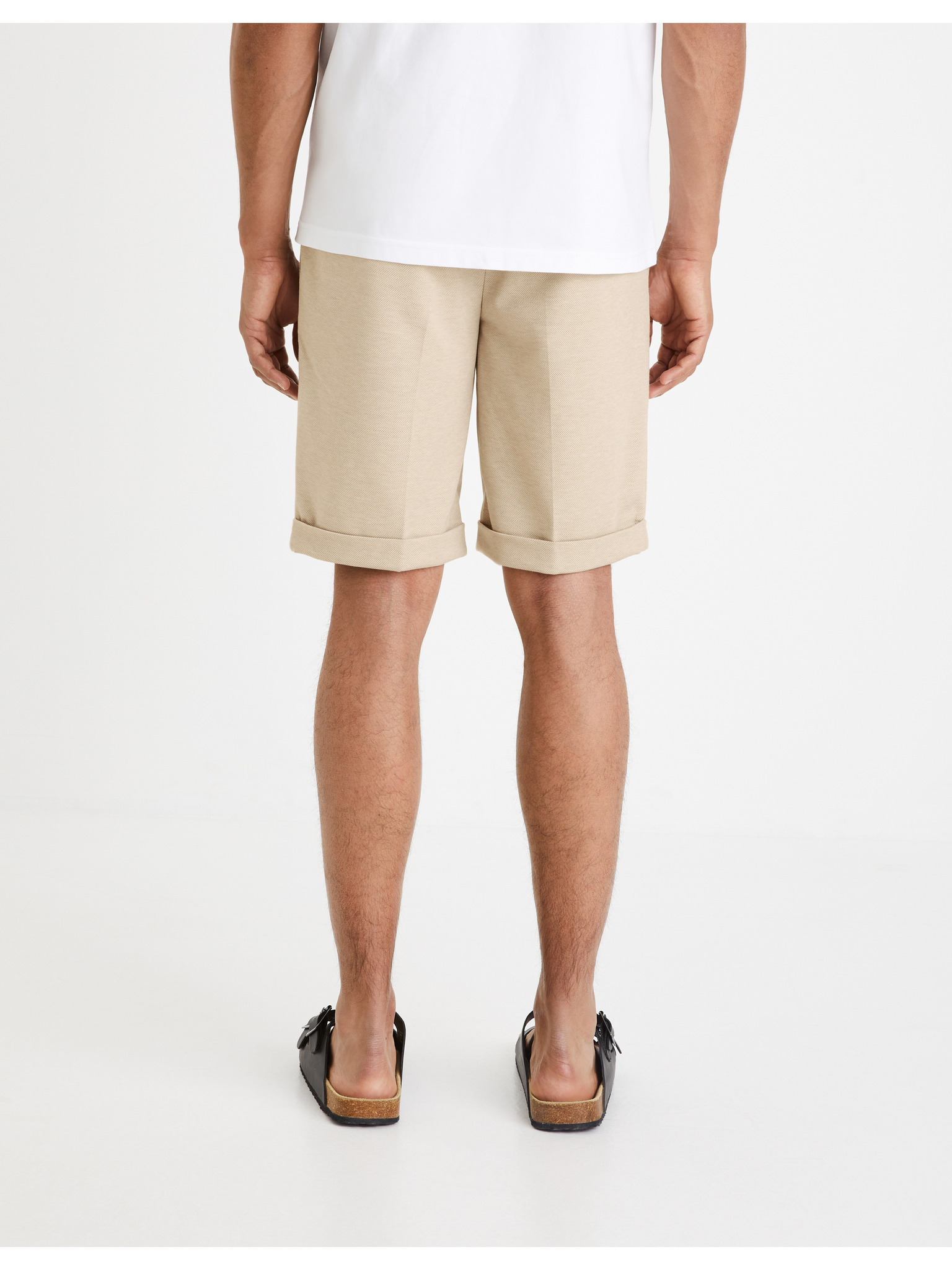 Béžové pánské lněné kraťasy Celio Dolincobm