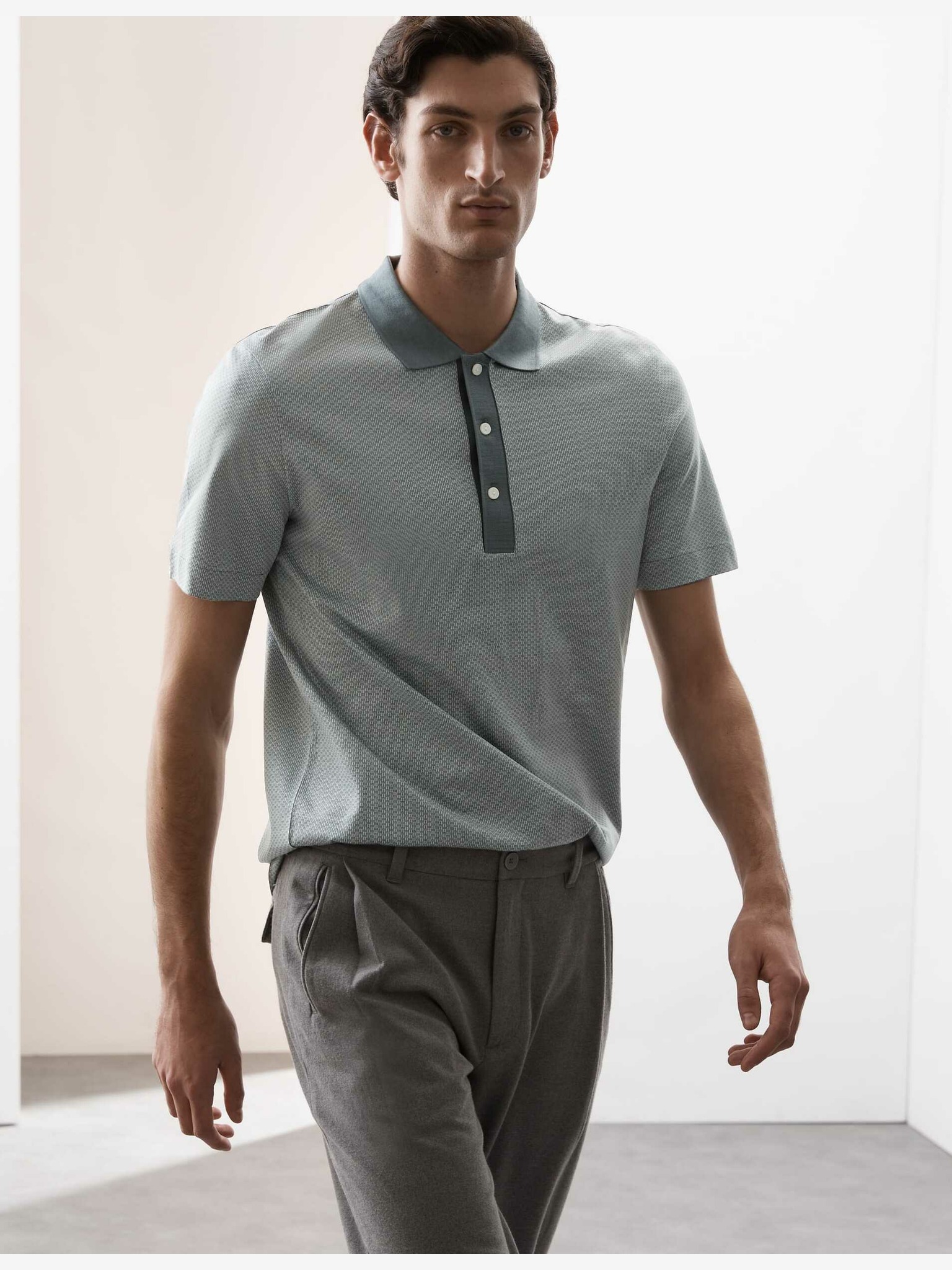Polotriko s geometrickým potiskem, ze 100% bavlny Marks & Spencer šedá