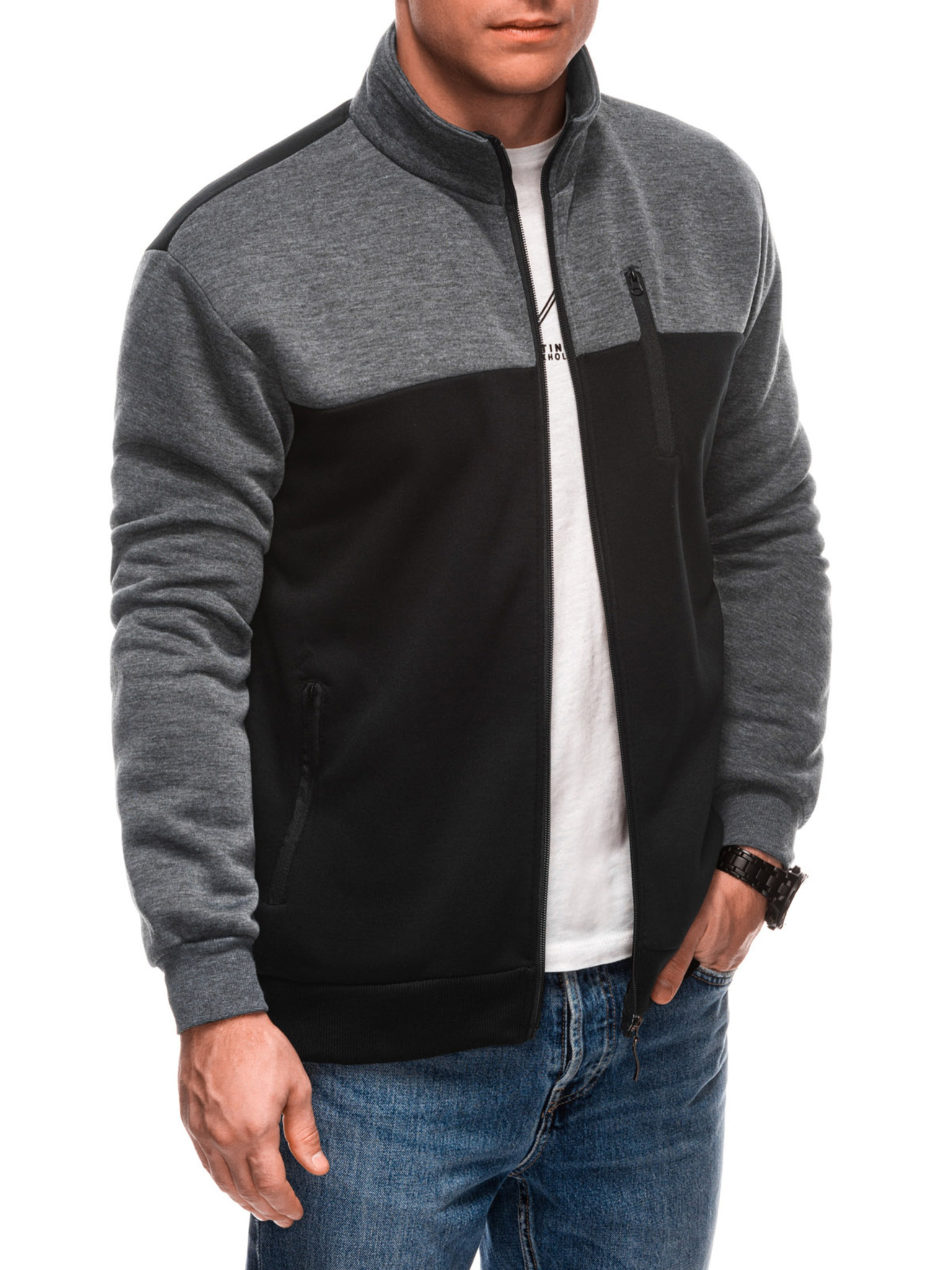 EDOTI Pánská mikina bez kapuce, šedá