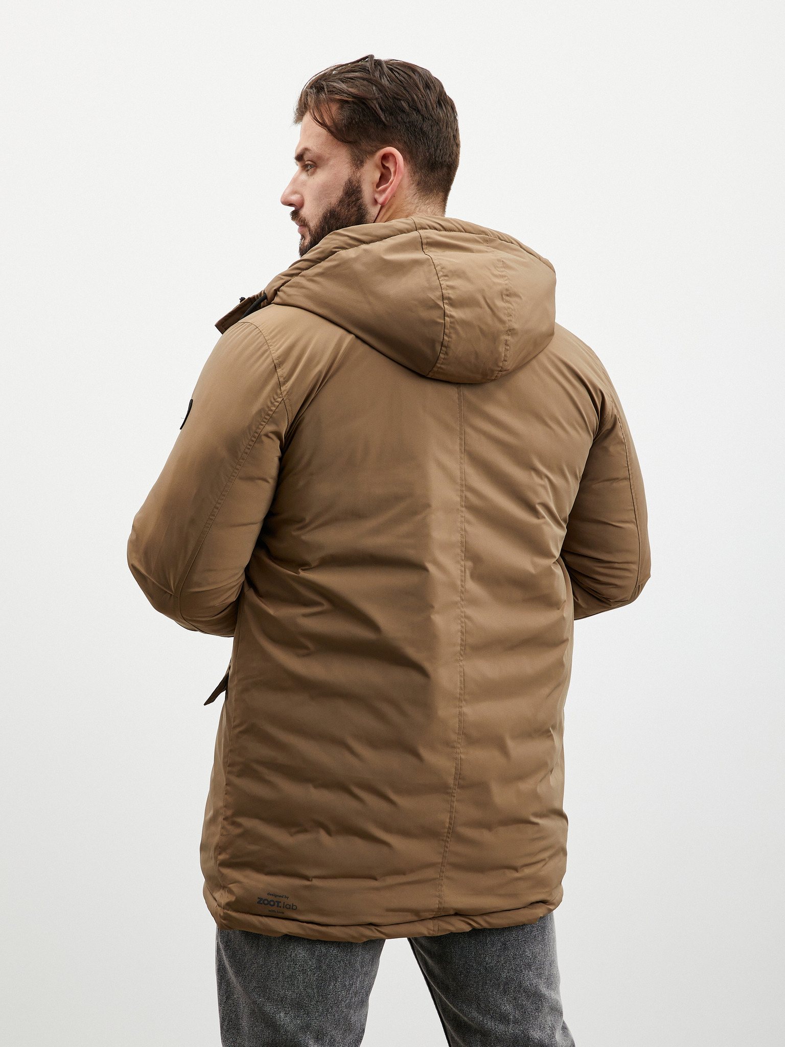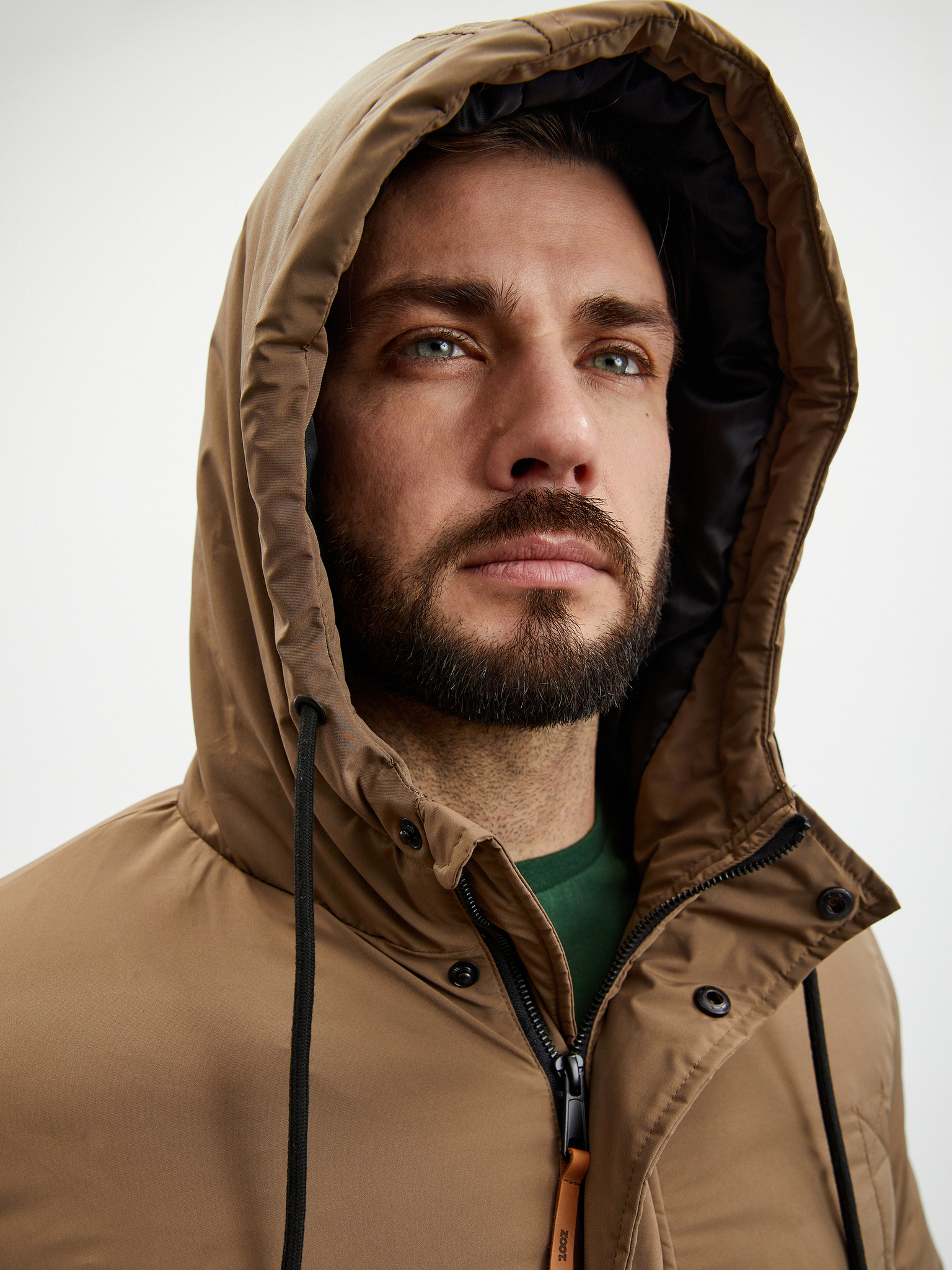 Pánský kabát s asymetrickým zapínáním a vysokým límcem světle hnědý Ombre Clothing