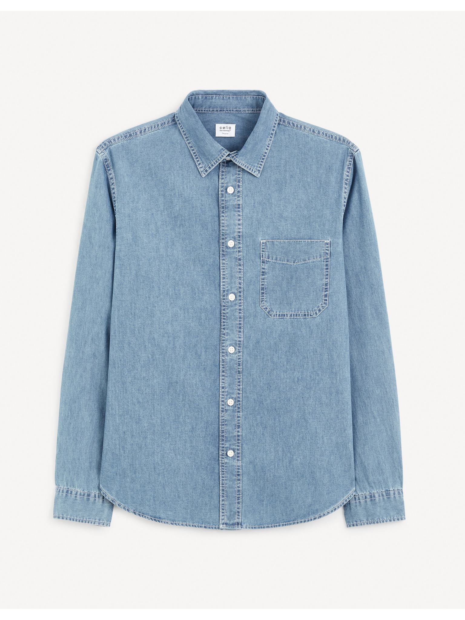 Pánská džínová košile s vyšívanou kapsou - světle modrá Ombre Clothing