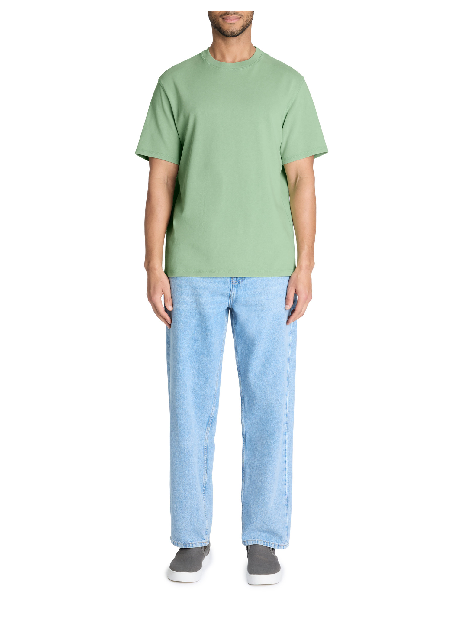 Pánské bavlněné tričko LOOSE FIT s kulatým výstřihem - khaki