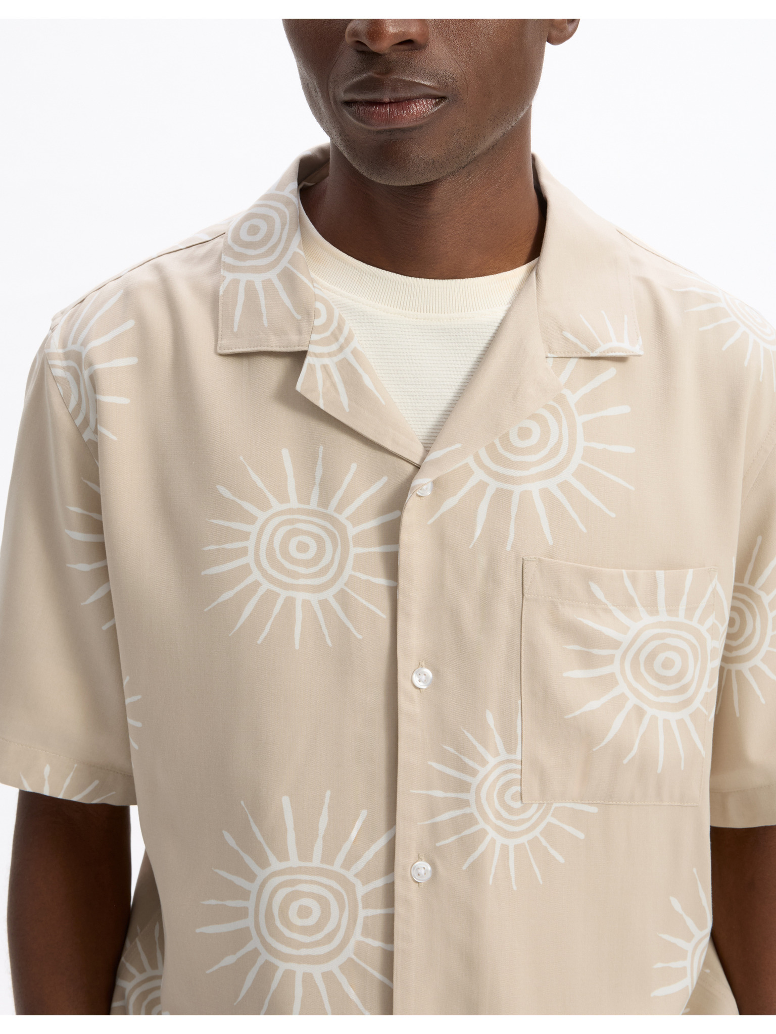 Pánská košile s krátkým rukávem a kubánským límcem béžová Ombre Clothing