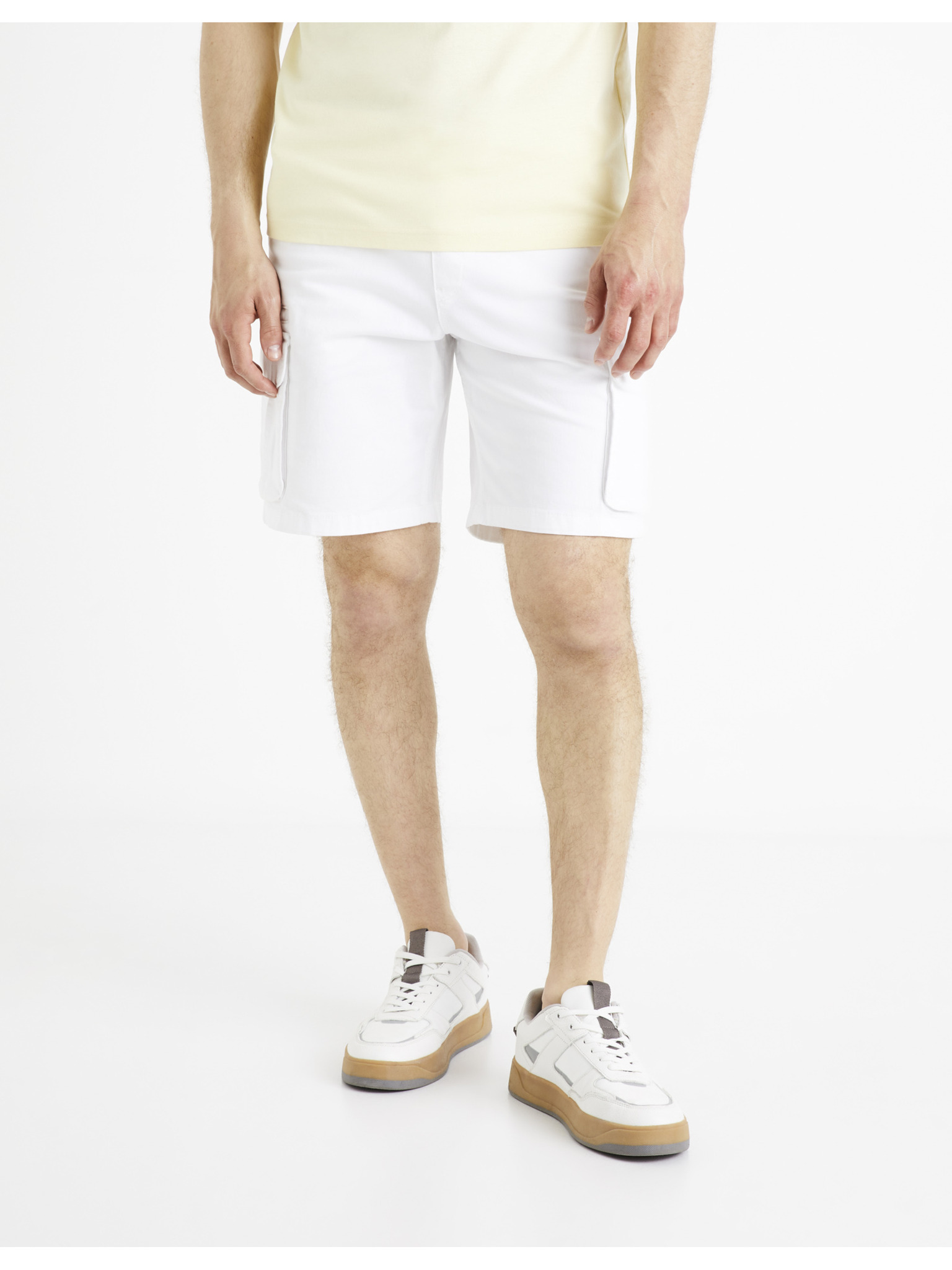 Pánské šortky volného střihu s cargo kapsami - krémové