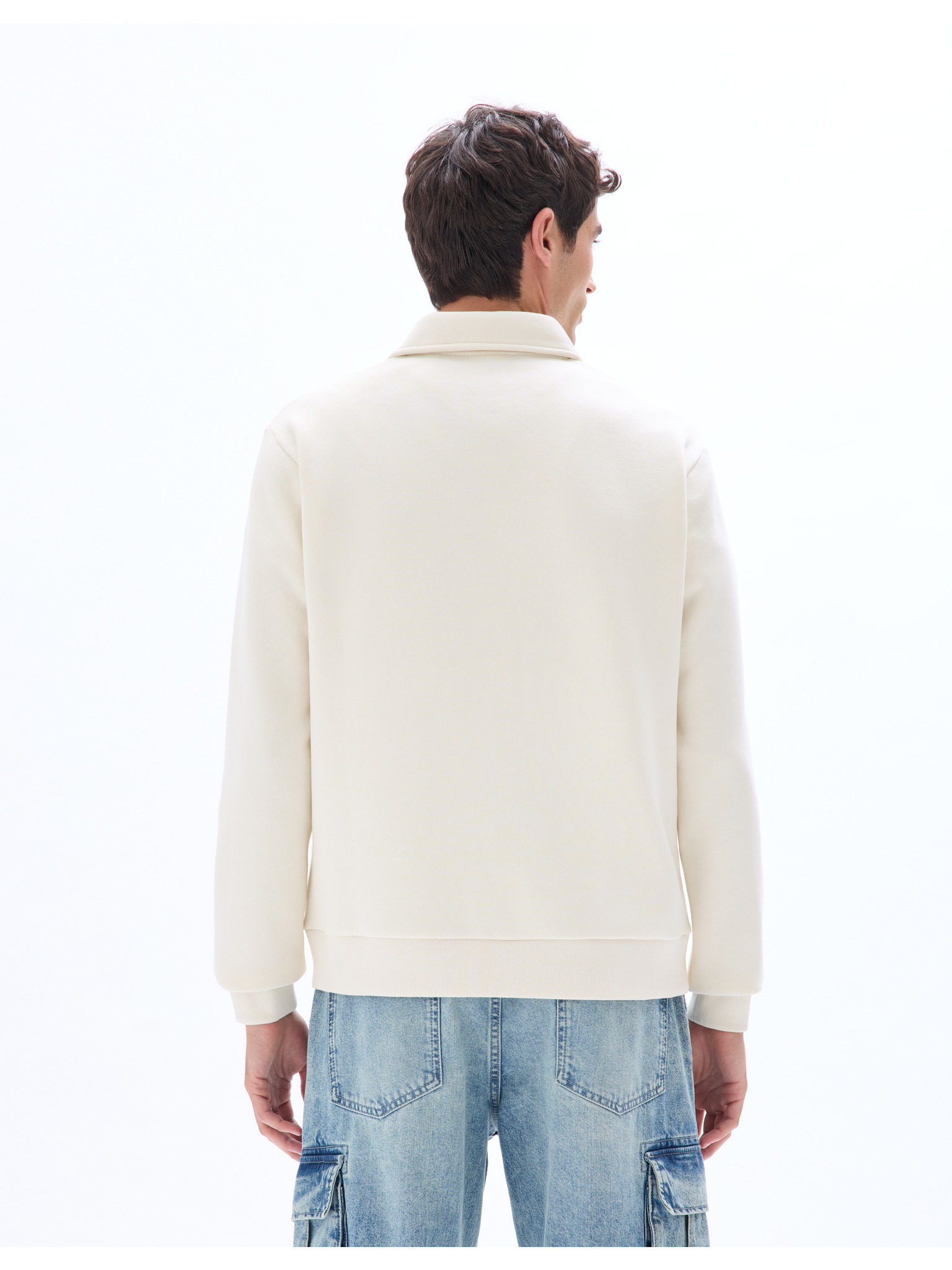 Béžová pánská basic mikina s límečkem Ombre Clothing