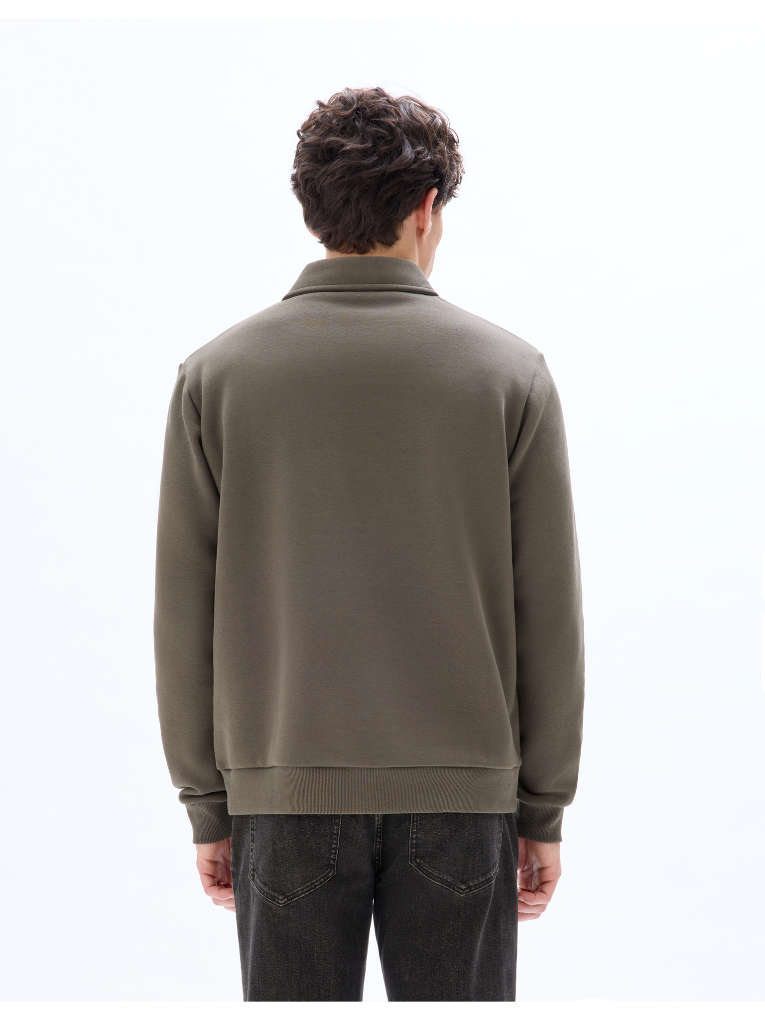 Pánská mikina s vysokým límcem a pruhy - olivová