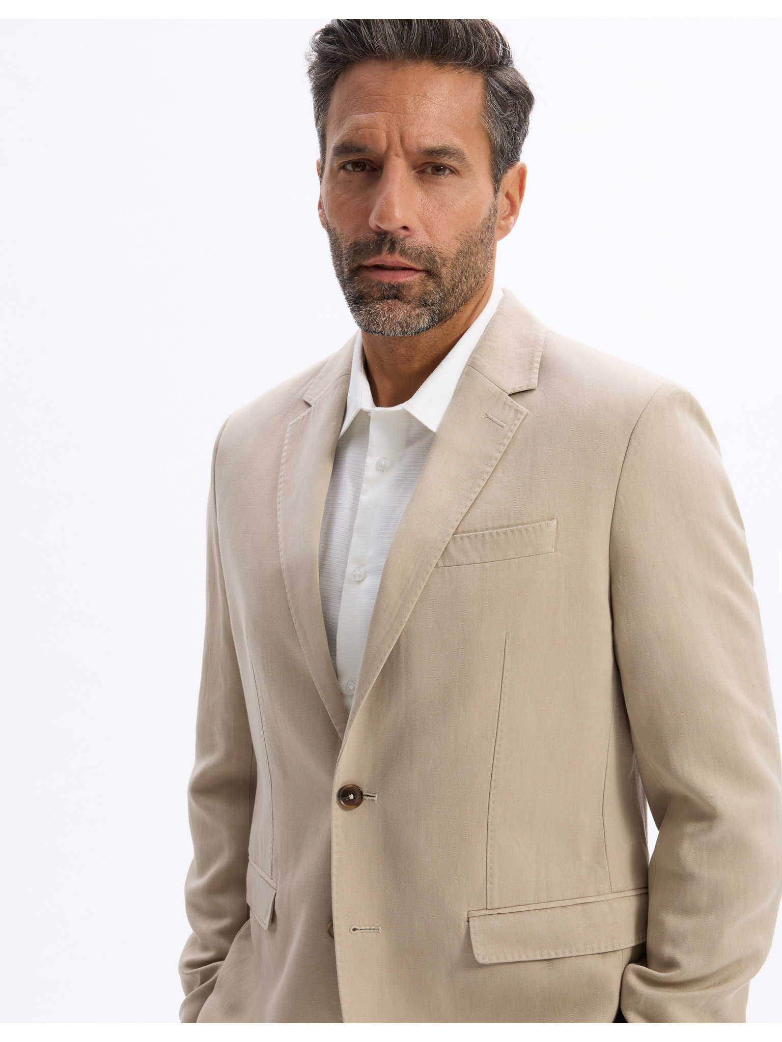 Elegantní pánské sako z vlněné směsi béžové Ombre Clothing