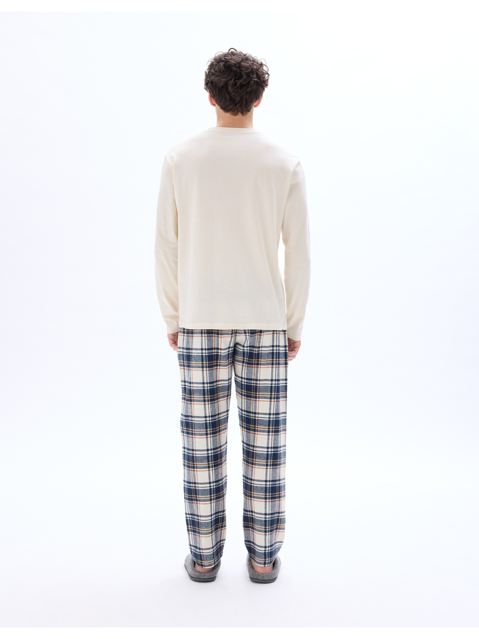 Neutrální kostkovaná pyžamová souprava z čisté bavlny Marks & Spencer smetanová