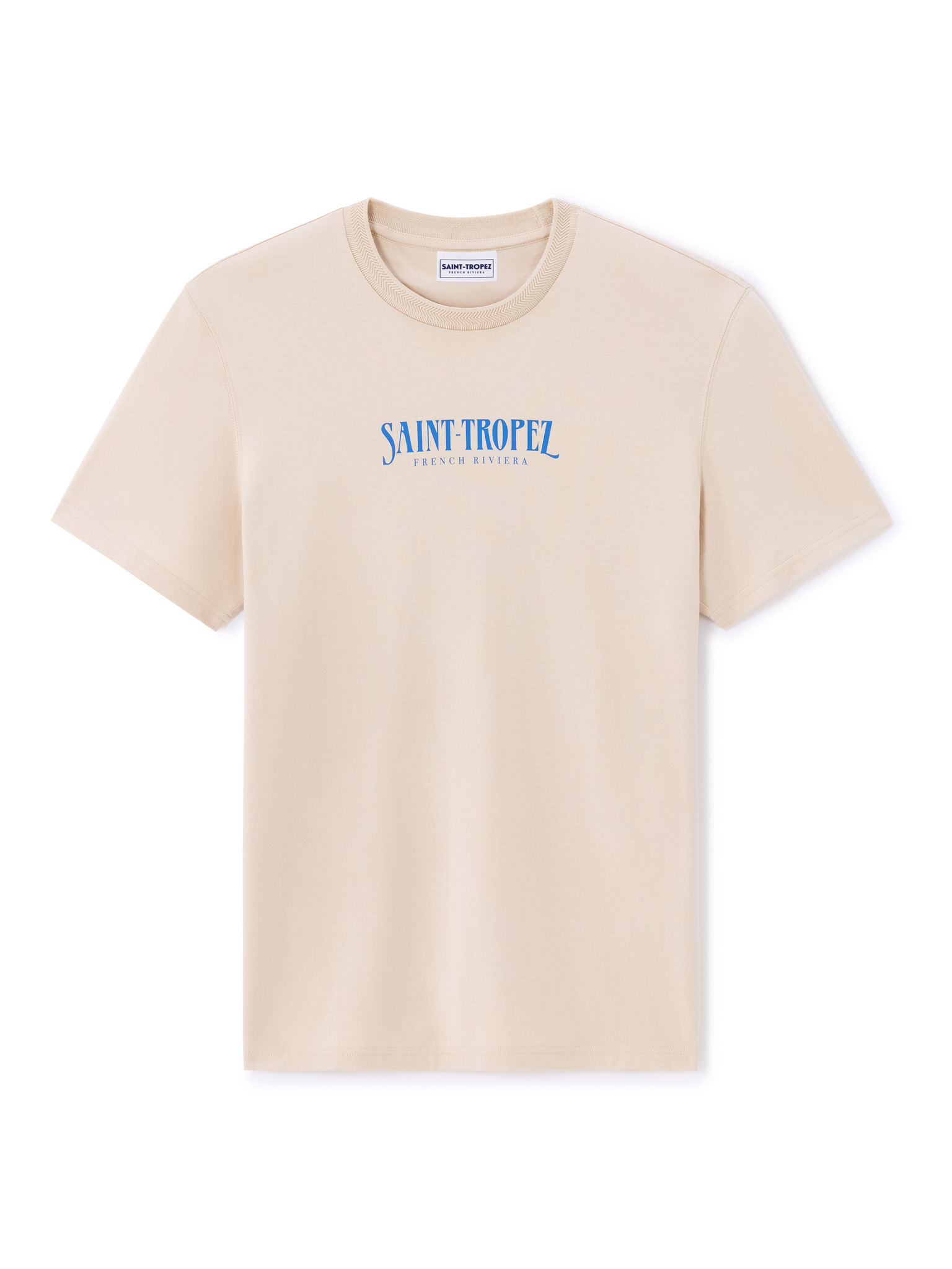 Pánské bavlněné tričko s potiskem a kulatým výstřihem - béžové