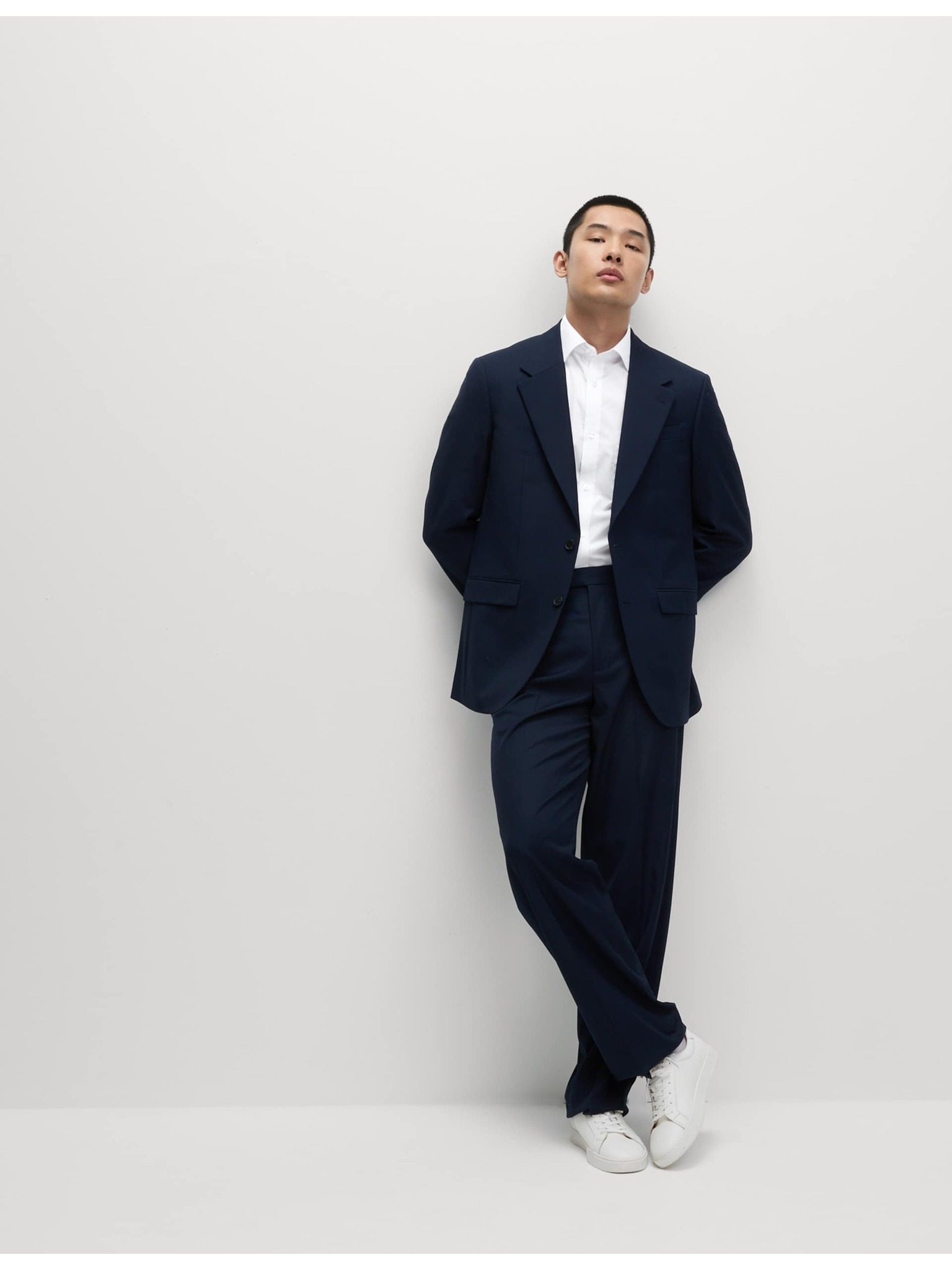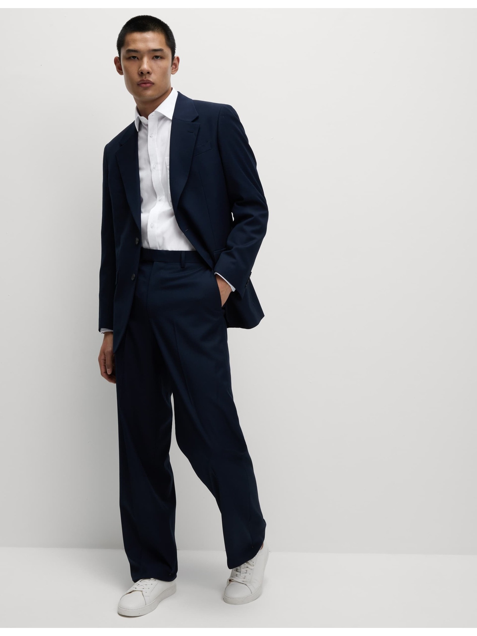 Keprová košile úzkého střihu z luxusní bavlny s dvojitou manžetou Marks & Spencer námořnická modrá