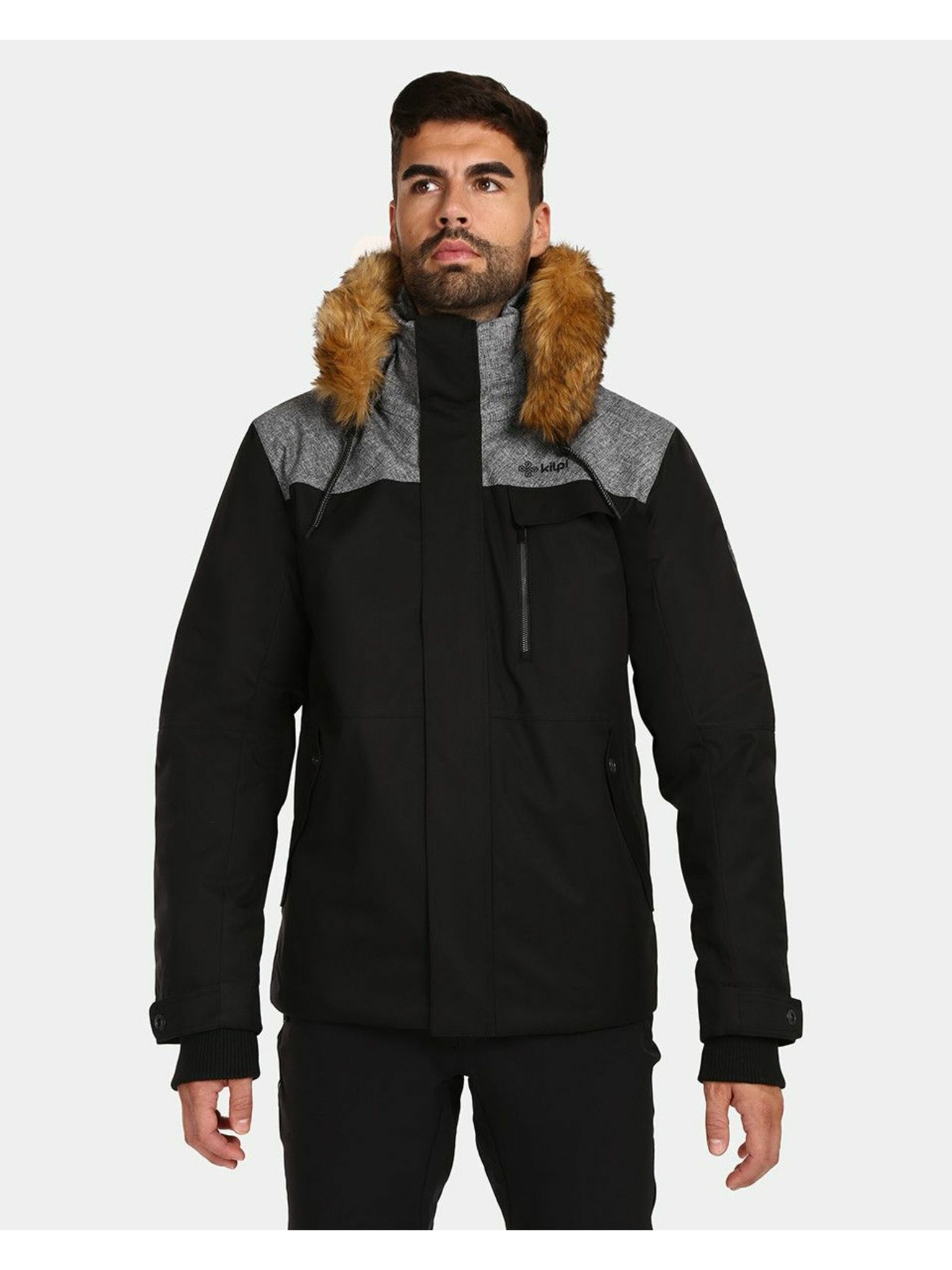 Khaki pánská zimní bunda s umělým kožíškem Kilpi ALPHA