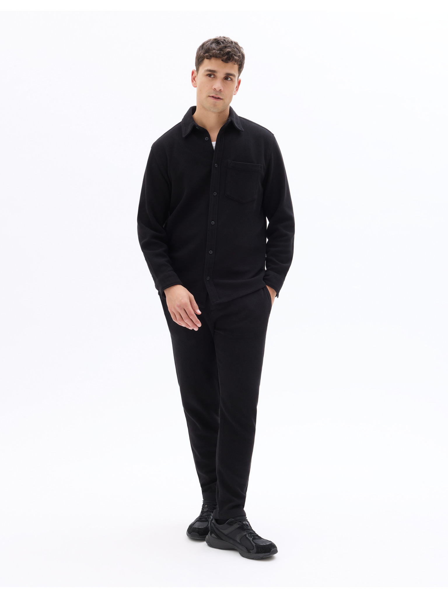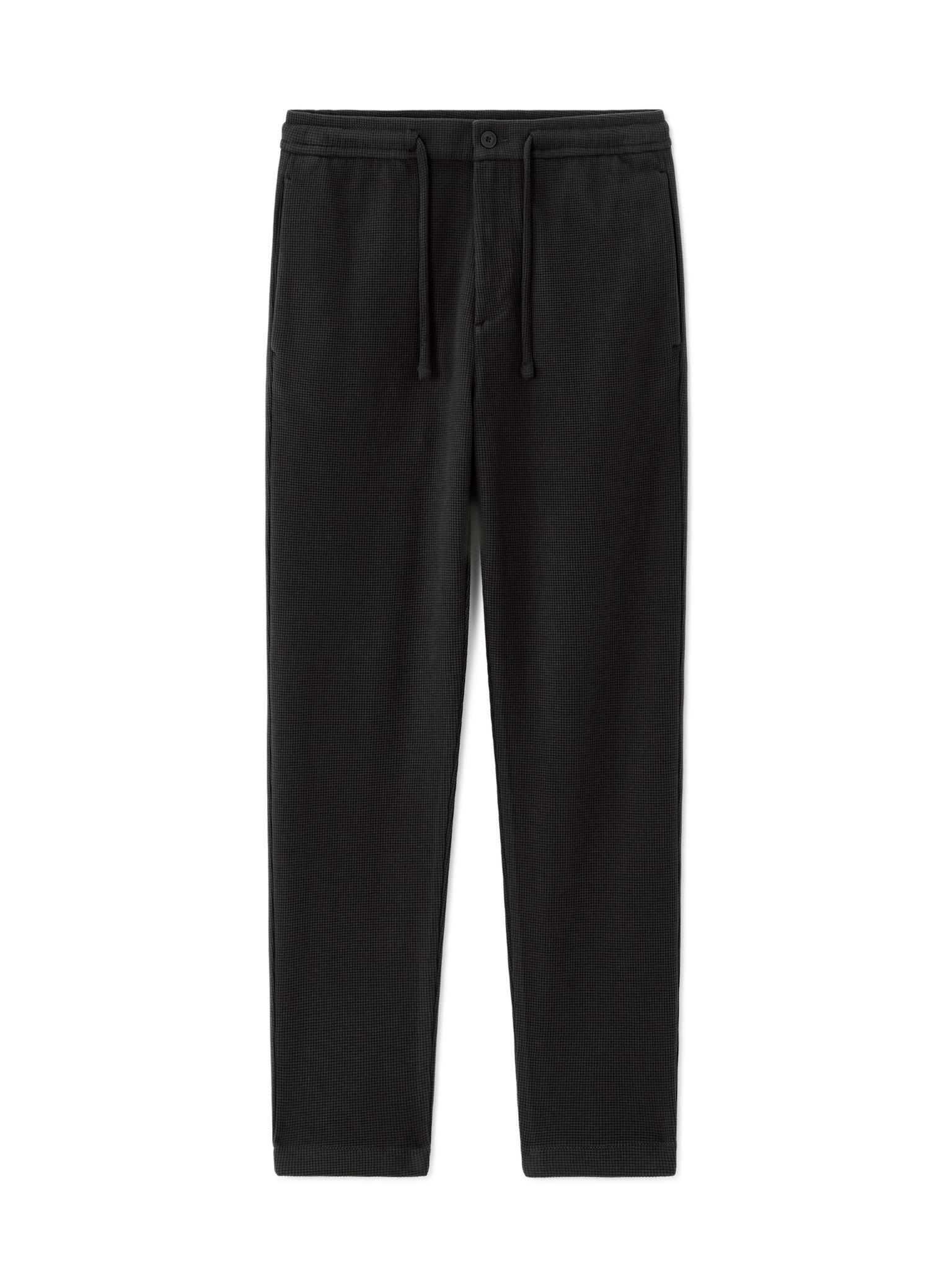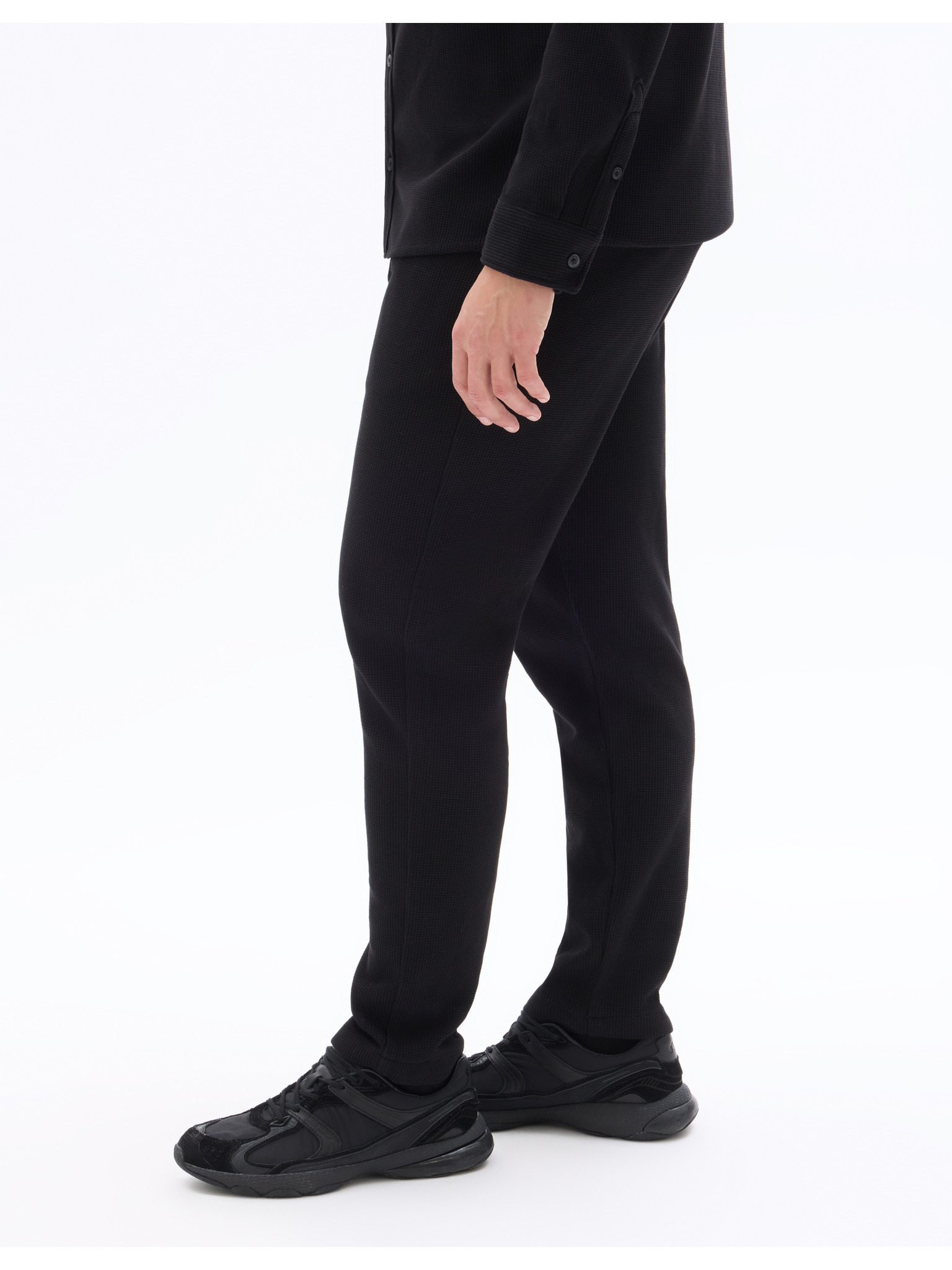Pánské kalhoty z piké úpletu s nastavitelným pasem - černé V2 OM-PACP-0283 Ombre Clothing