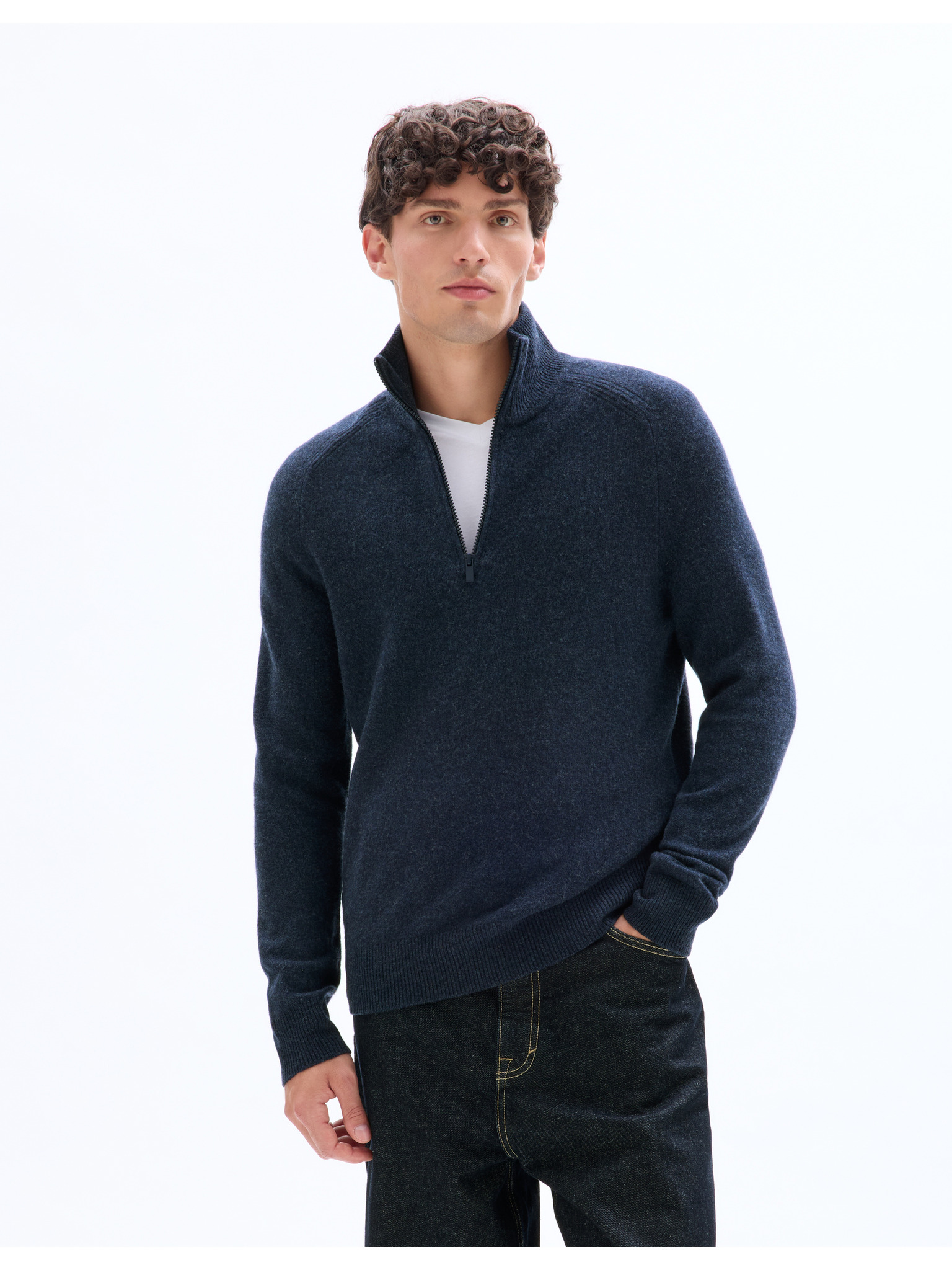 Tmavě modrý pánský kašmírový svetr s rolákem Celio Jehigh