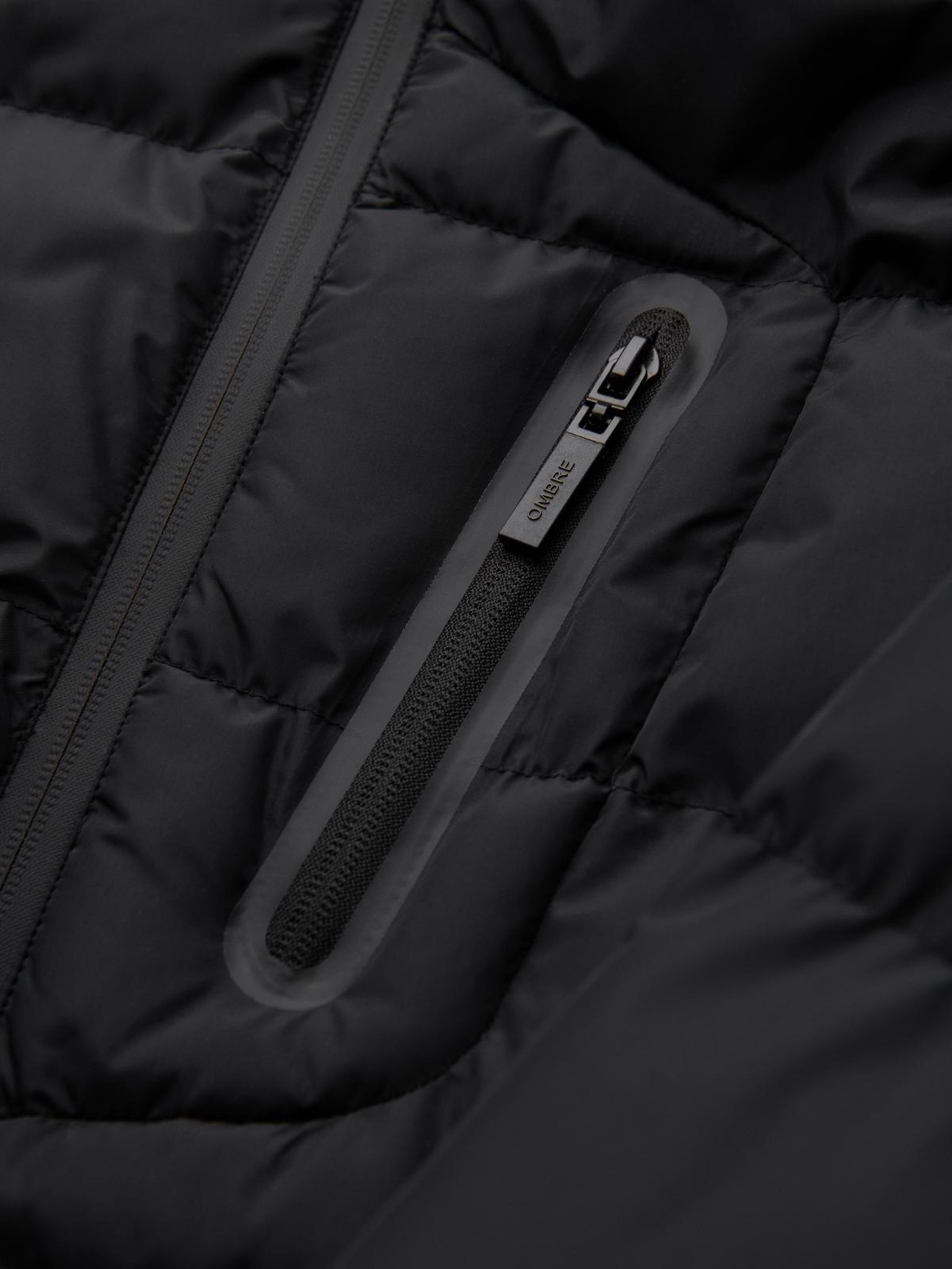 Pánská ultralehká bunda z přírodního prachového peří s kapsou - černá V1 OM-JALP-0211 Ombre Clothing