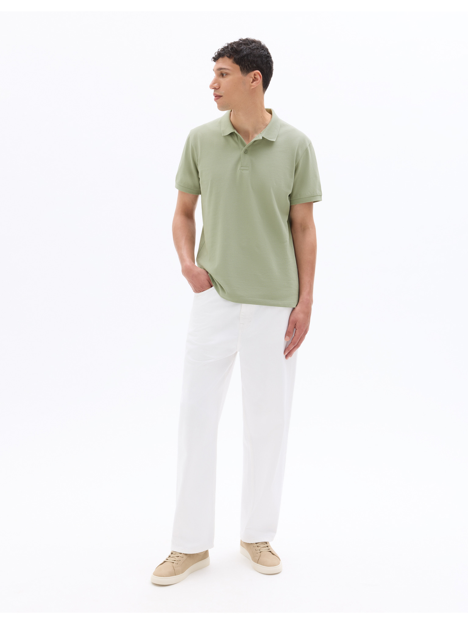Pánská pletená polokošile bez knoflíků - olivová