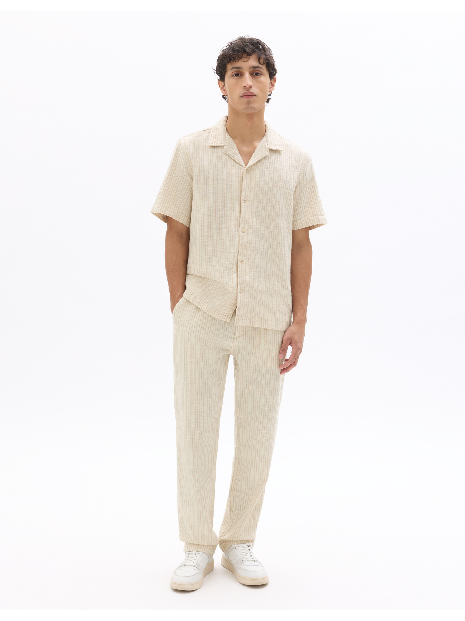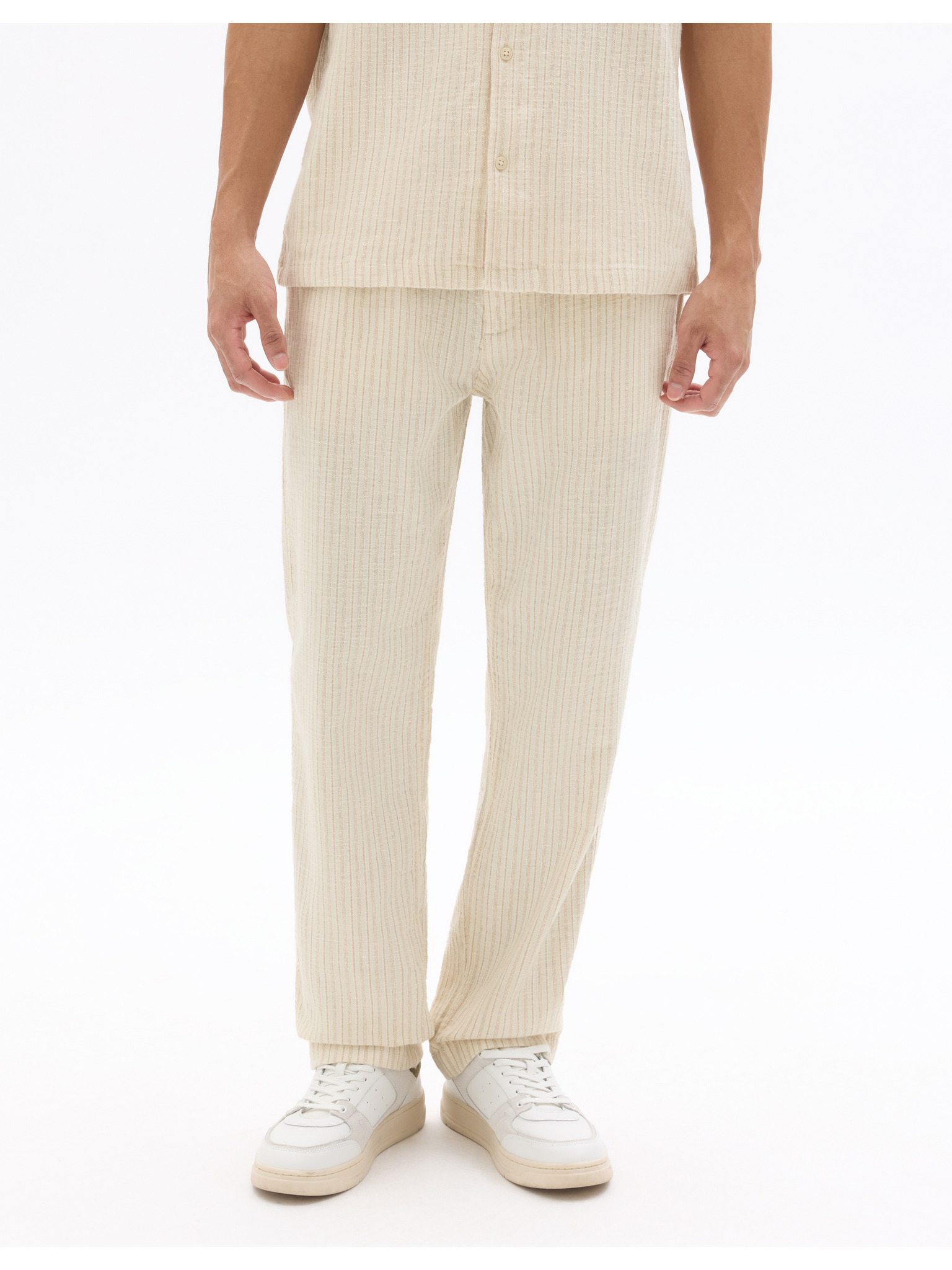 Béžové pánské kalhoty s příměsí lnu Celio Dolinco