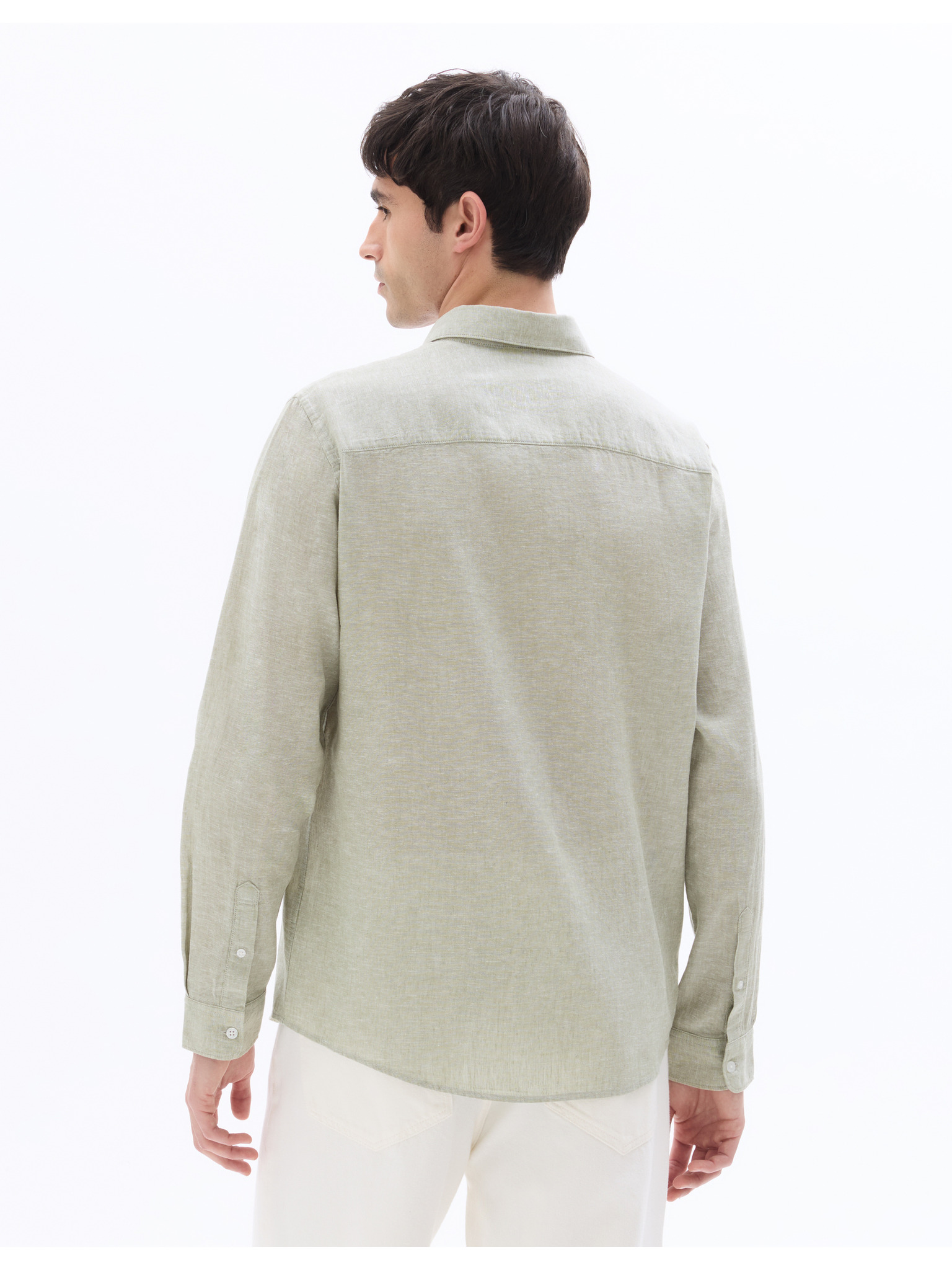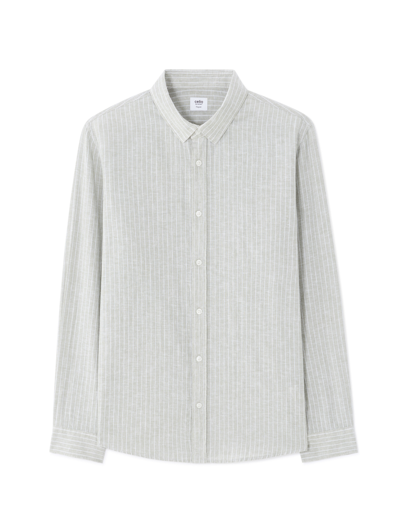 Pánská plátěná košile se stojáčkem a kapsou REGULAR FIT - khaki