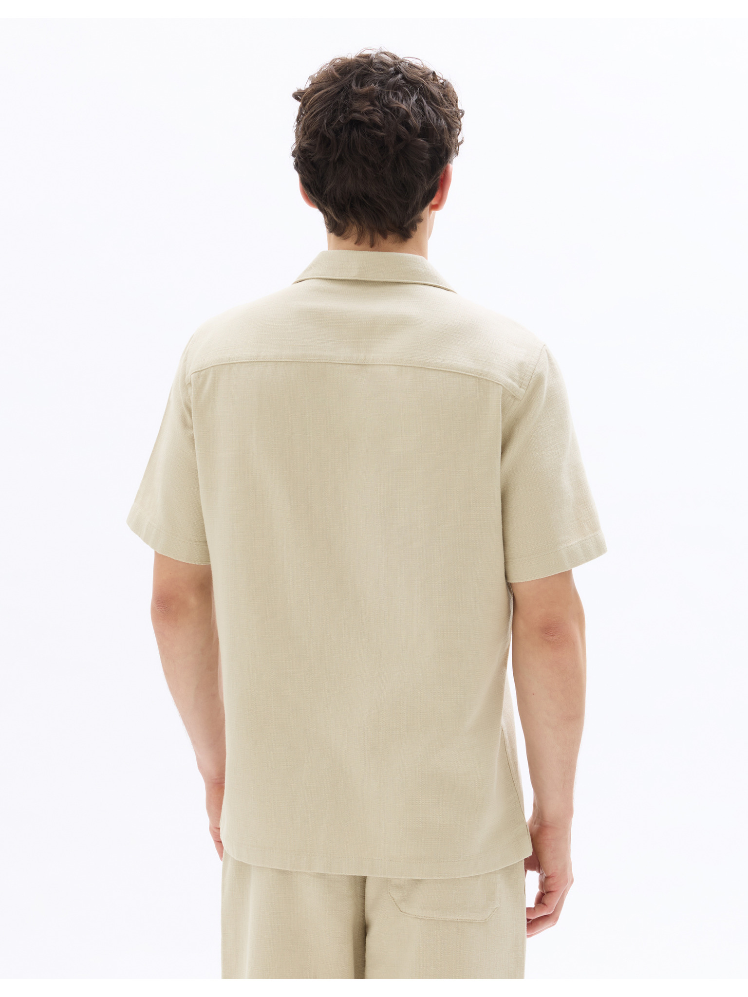 Pánská košile s krátkým rukávem a kubánským límcem béžová Ombre Clothing