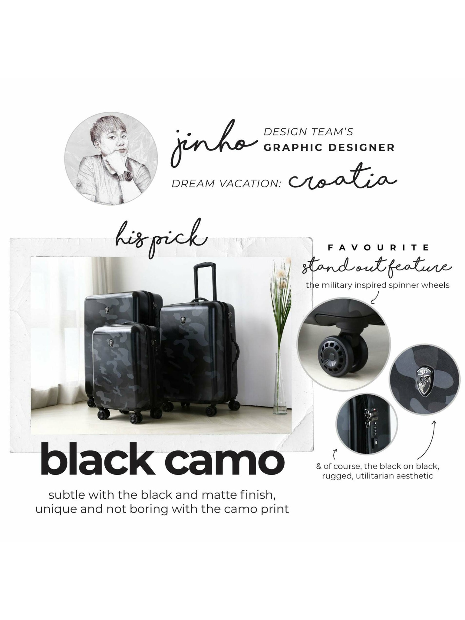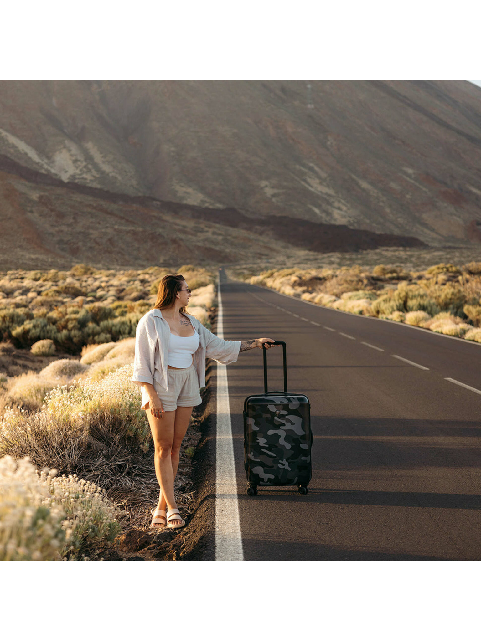 Funkční kufr Heys Black Camo z nárazuvzdorného polykarbonátu s matným povrchem zaujme svým trendy vzorem v army stylu. Úložný prostor s integrovaným expandérem je vybaven kapsami pro přehledné uložení všech nezbytnosti, které potřebujete mít na cestách u sebe. Praktický TSA zámek ochrání vaši výbavu a usnadní kontroly zavazadla při cestování napříč kontinenty. O pohodlnou jízdu bez starostí a zbytečné námahy se postarají výsuvná rukojeť, madlo a plně otočná kolečka.