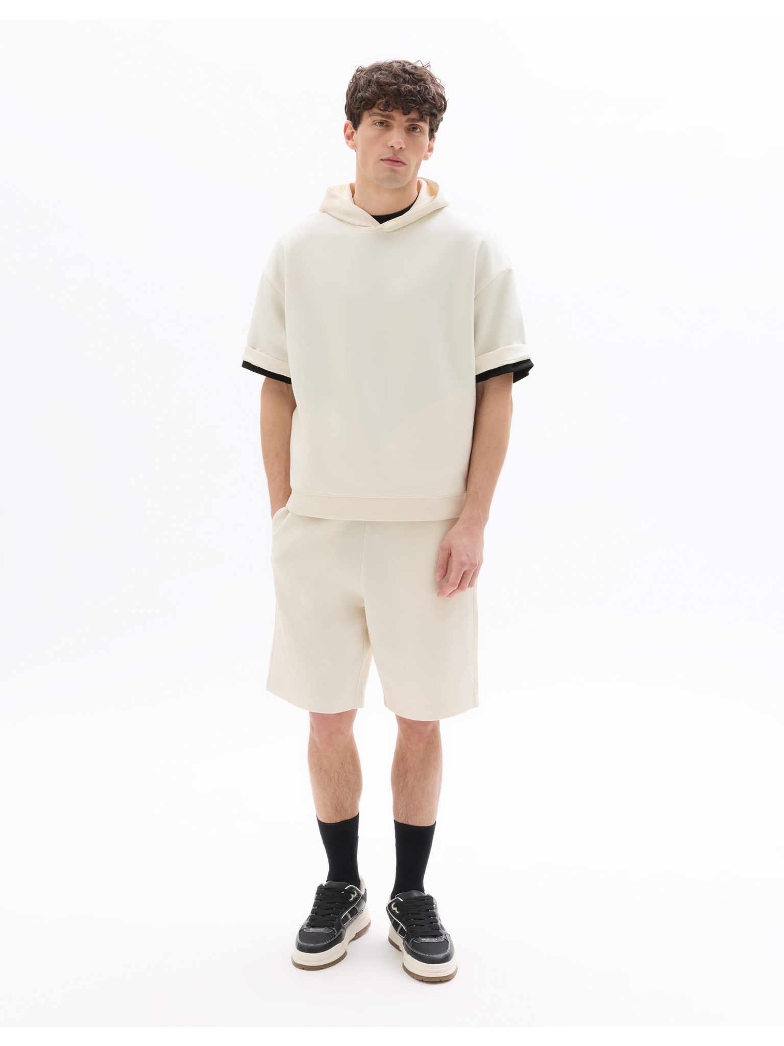 Pánské bavlněné tričko LOOSE FIT s kulatým výstřihem - ecru V2 OM-TSBC-0267 Ombre Clothing