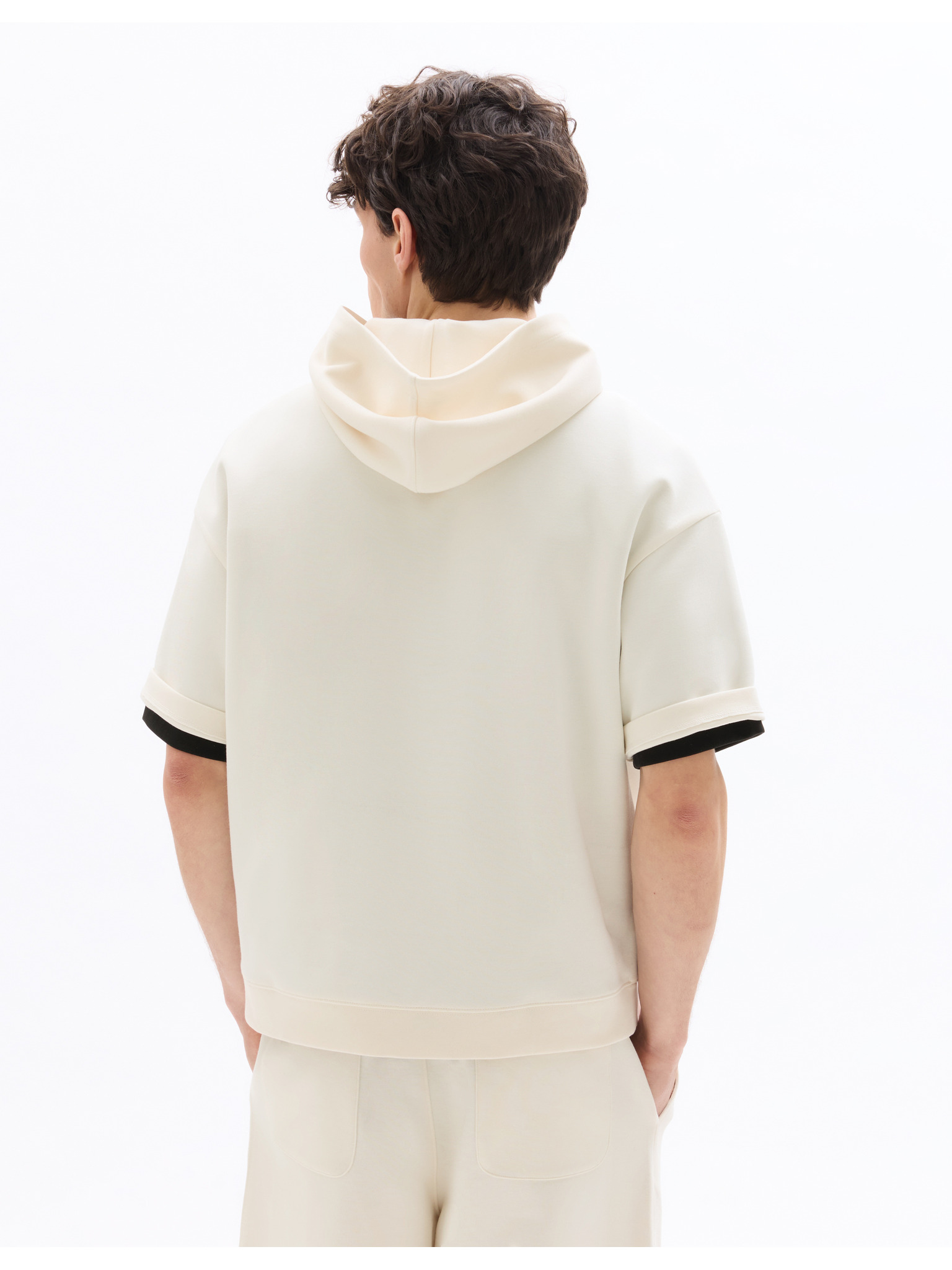 Pánské bavlněné tričko s kapucí - béžové V5 OM-TSCT-0256 Ombre Clothing