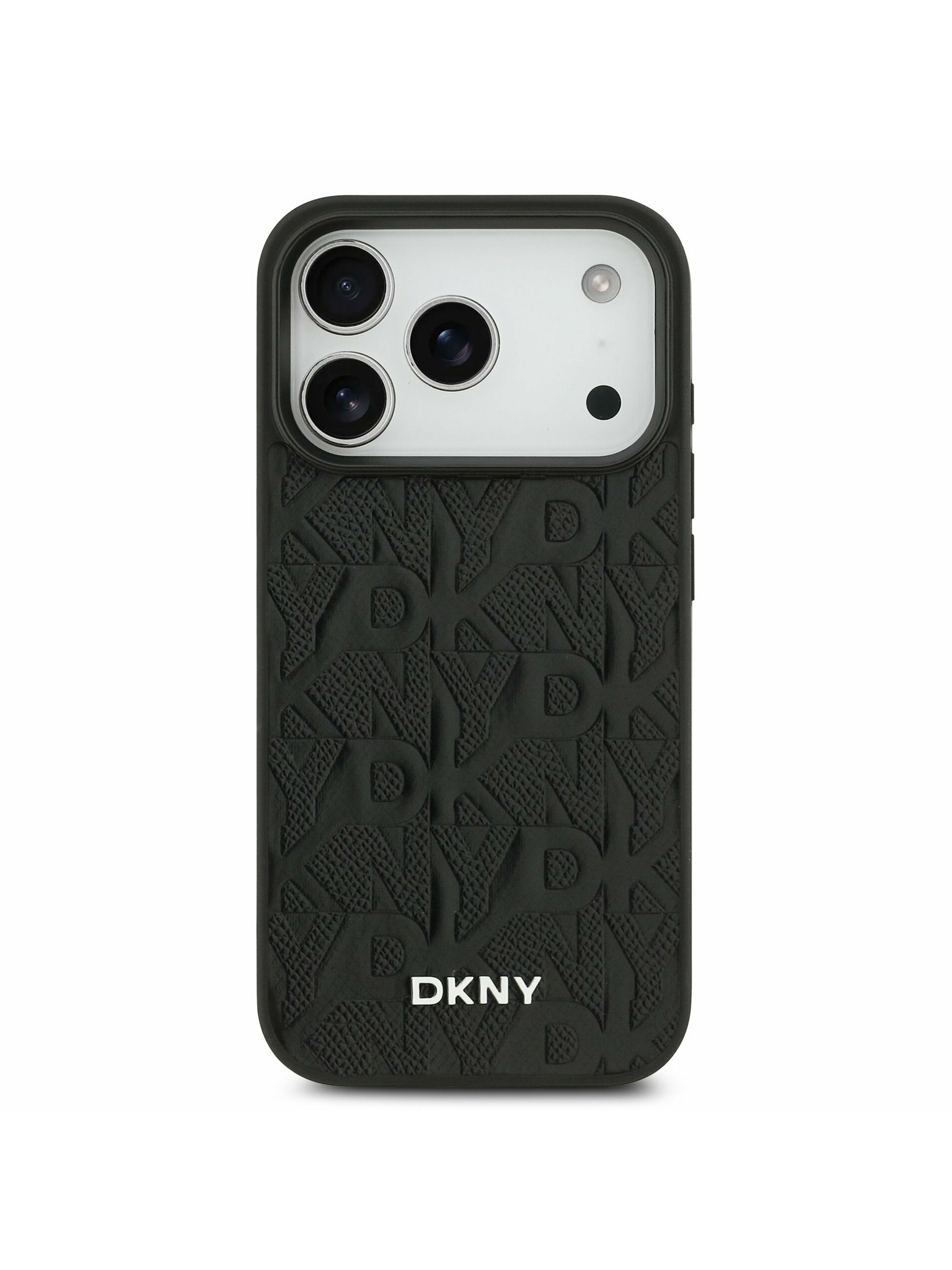 DKNY PU Leather Repeat Pattern Tonal Stripe Zadní Kryt pro iPhone 16 Pro Max Black