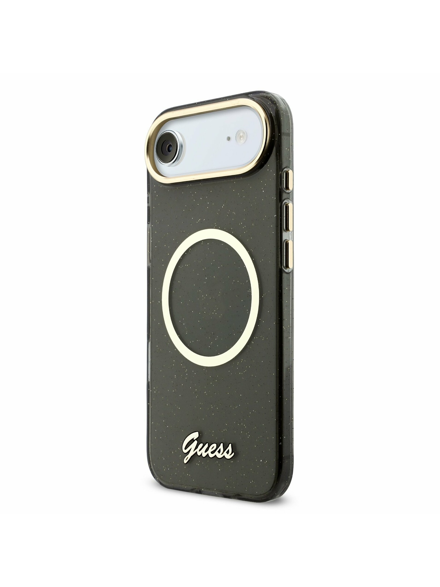 Guess IML Glitter Script Strap MagSafe Zadní Kryt pro iPhone Air Transparent
