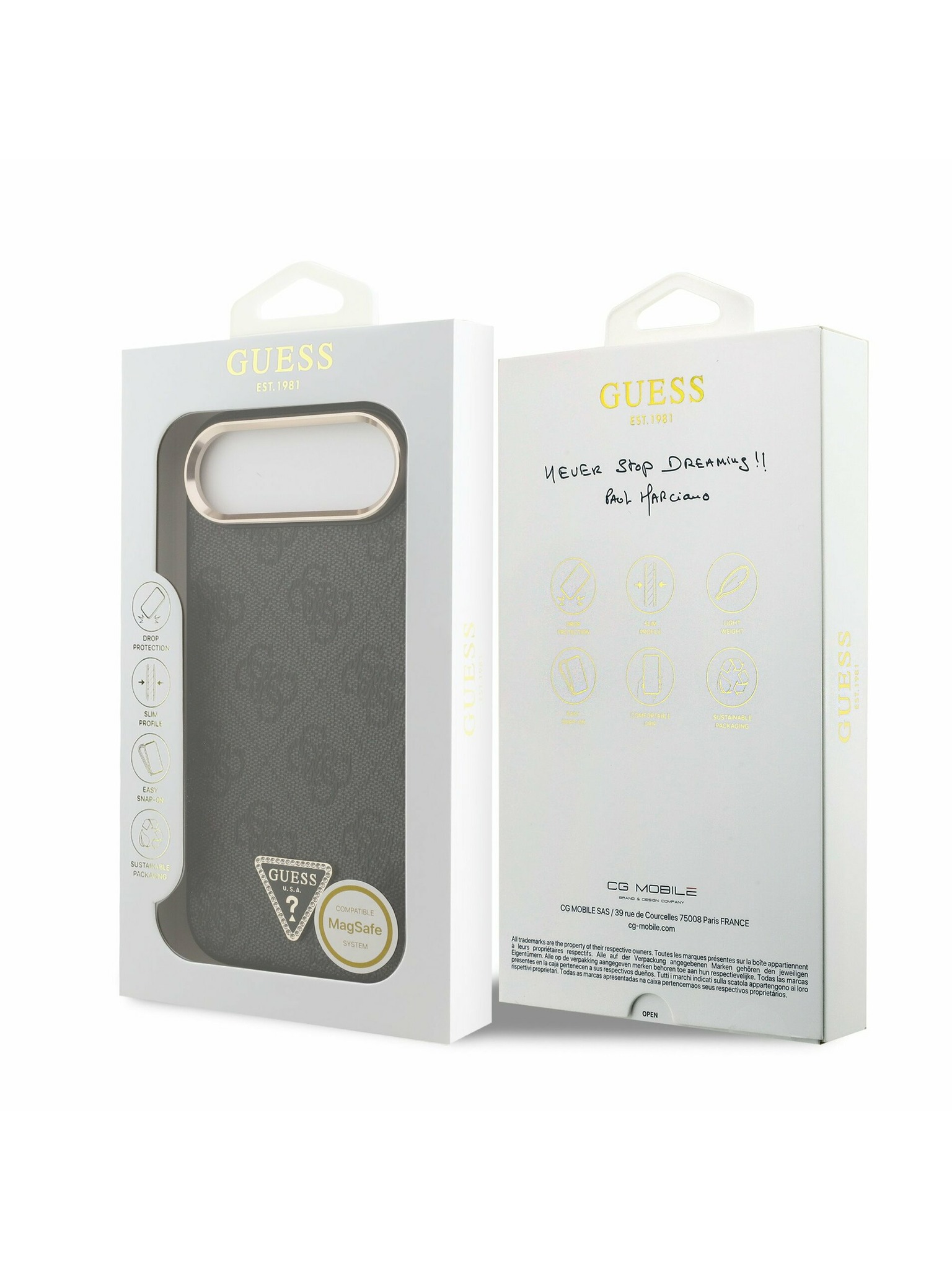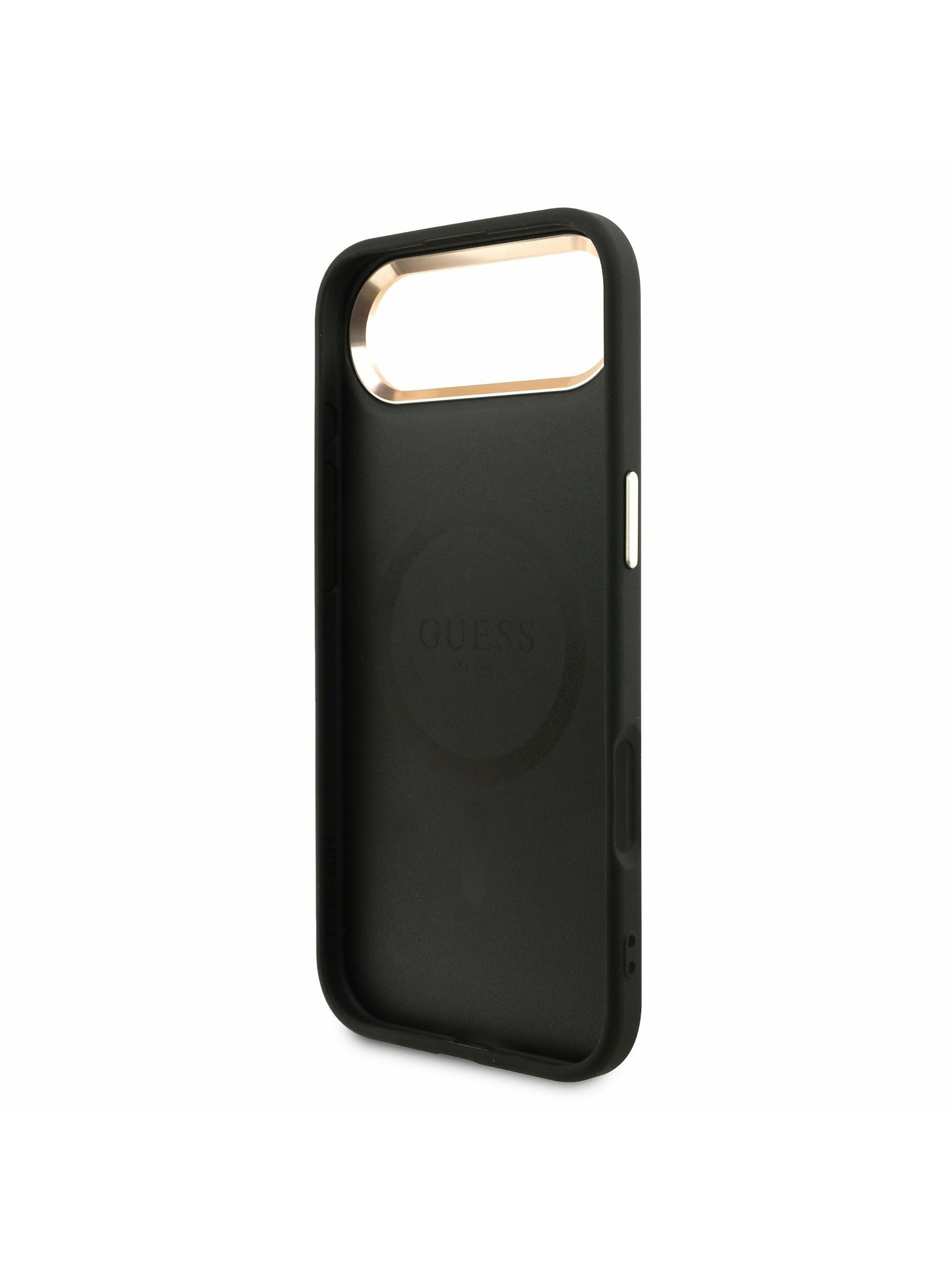 Guess IML Gold Outline Stand Camera Frame MagSafe Zadní Kryt pro iPhone 16 Pro Max Transparent