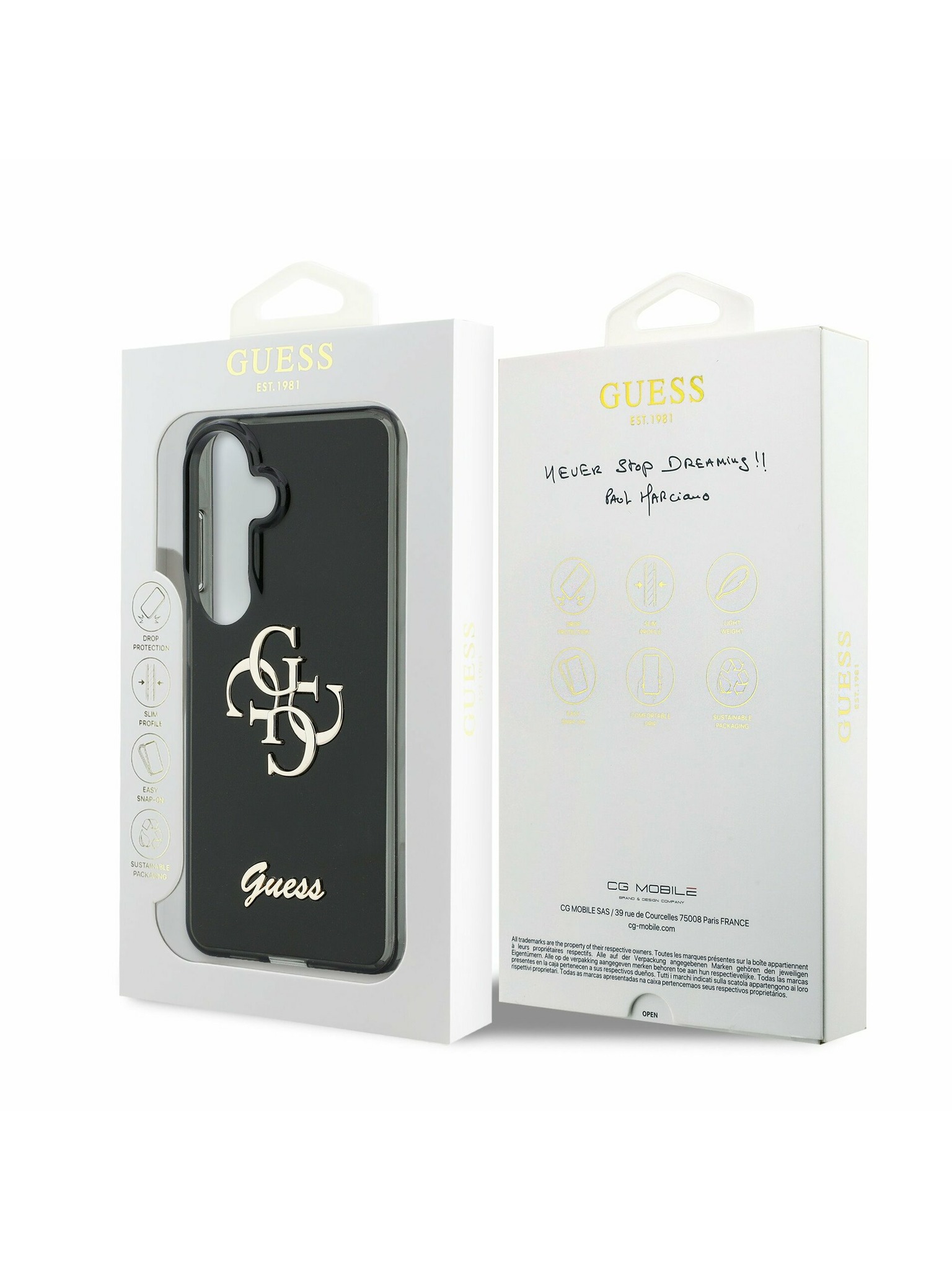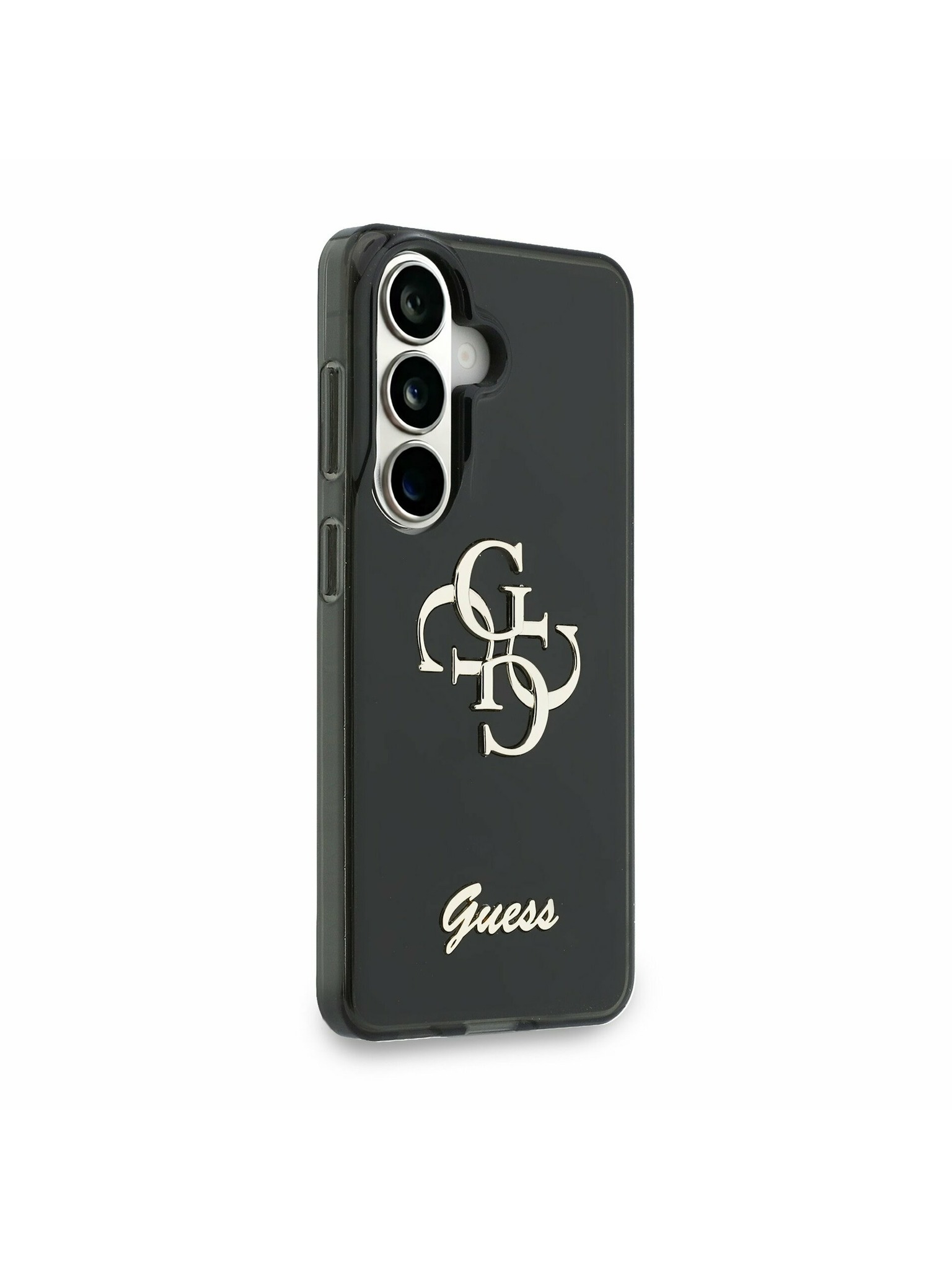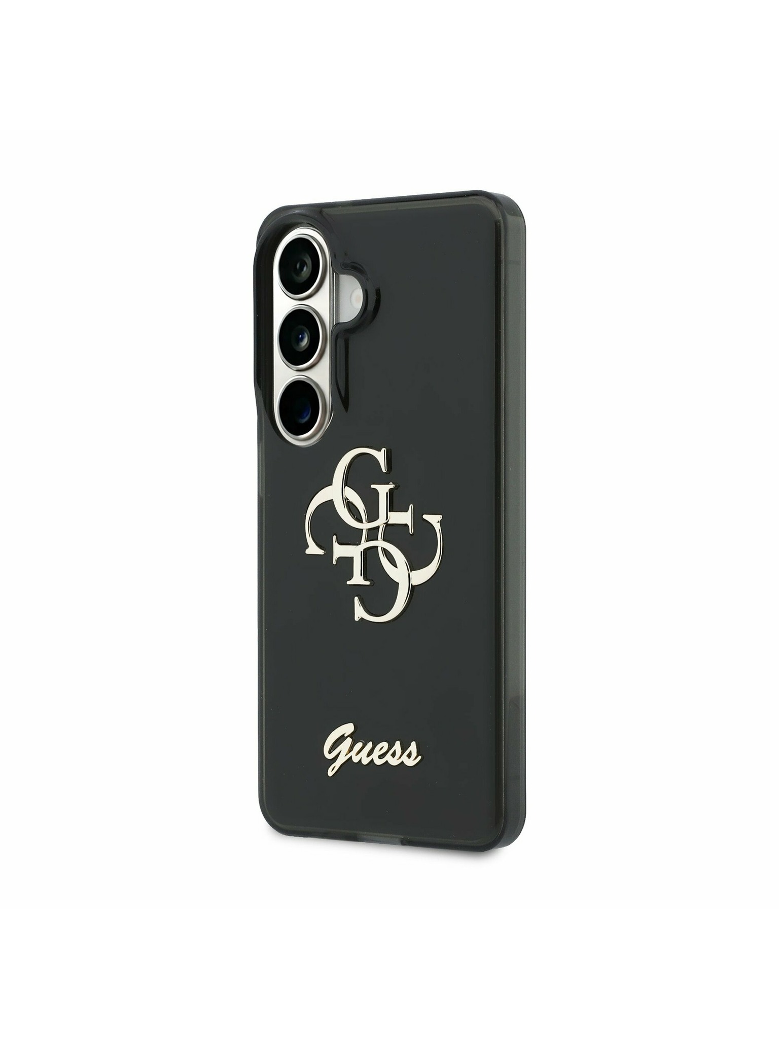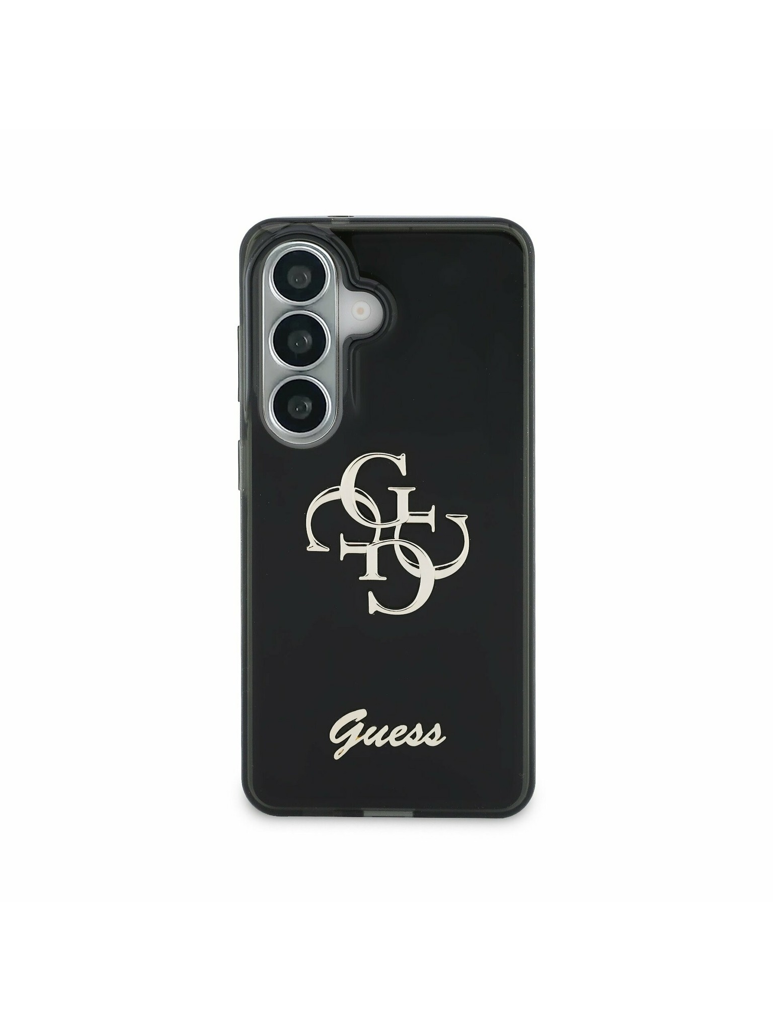 Guess IML Gold Outline Stand Camera Frame MagSafe Zadní Kryt pro iPhone 16 Pro Max Transparent