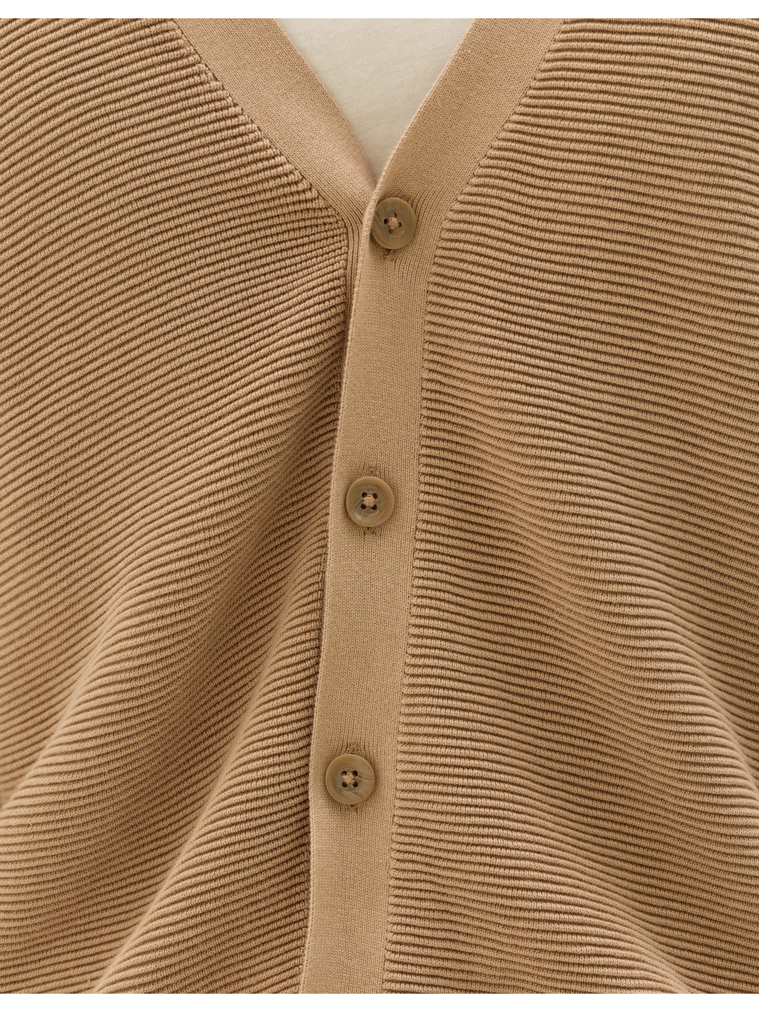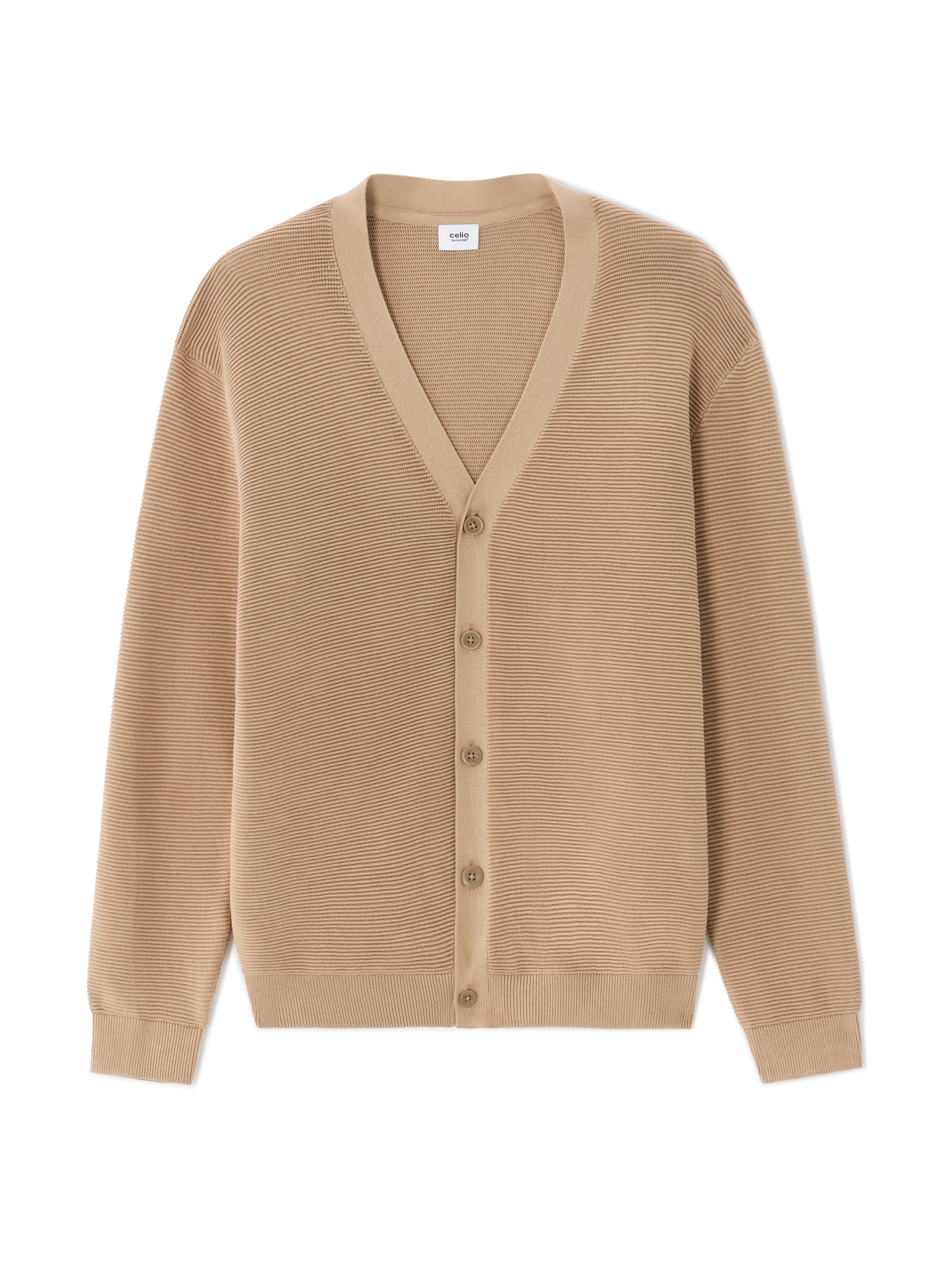 Pánský žebrovaný svetr s knoflíky u výstřihu - béžový V3 OM-SWSW-0182 Ombre Clothing